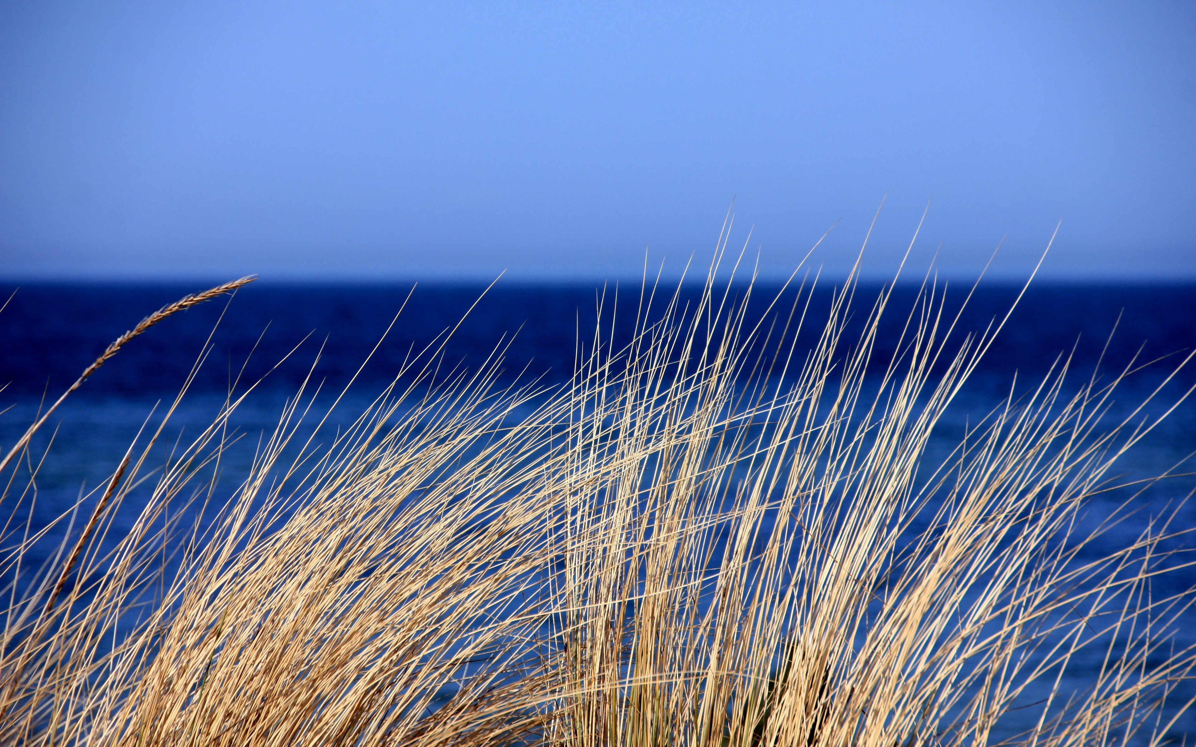 Сухая трава на фоне голубого горизонта - 3840x2400
