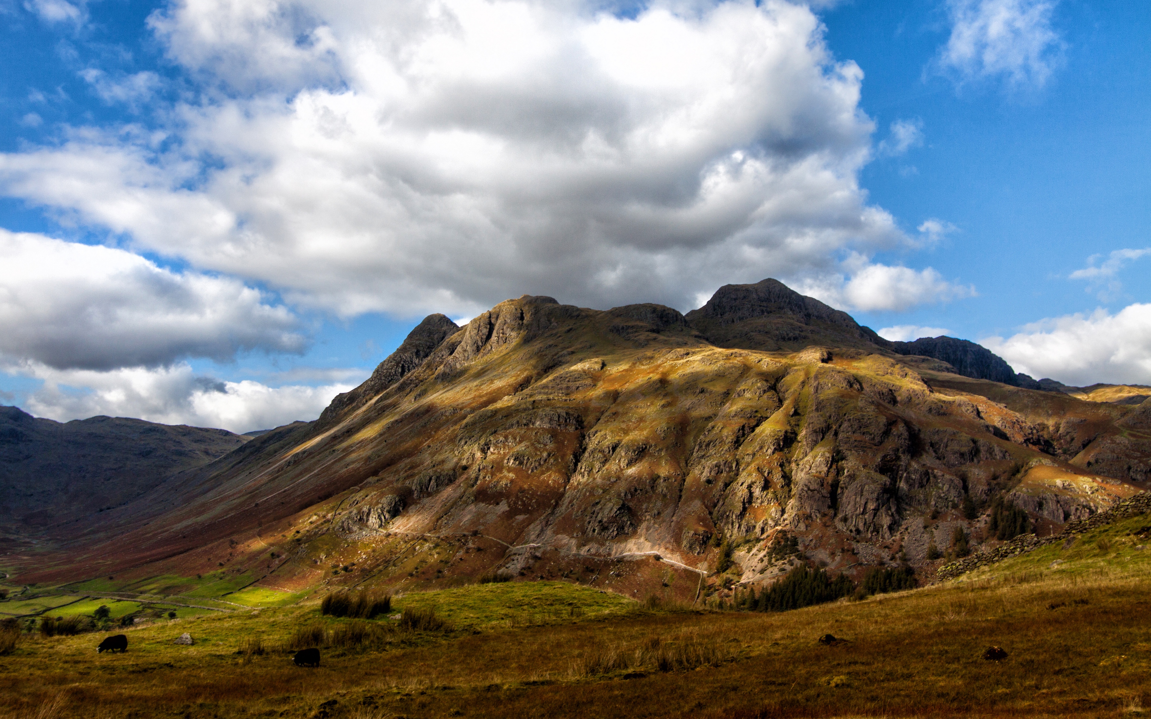 Белые пушистые облака над горой - 3840x2400