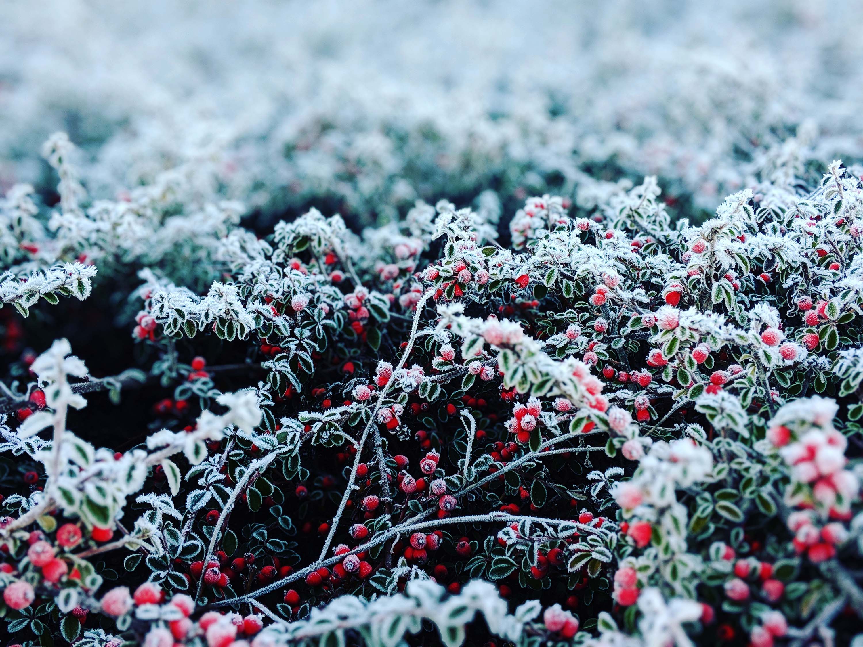 Красные ягоды покрытые инеем - 3000x2250