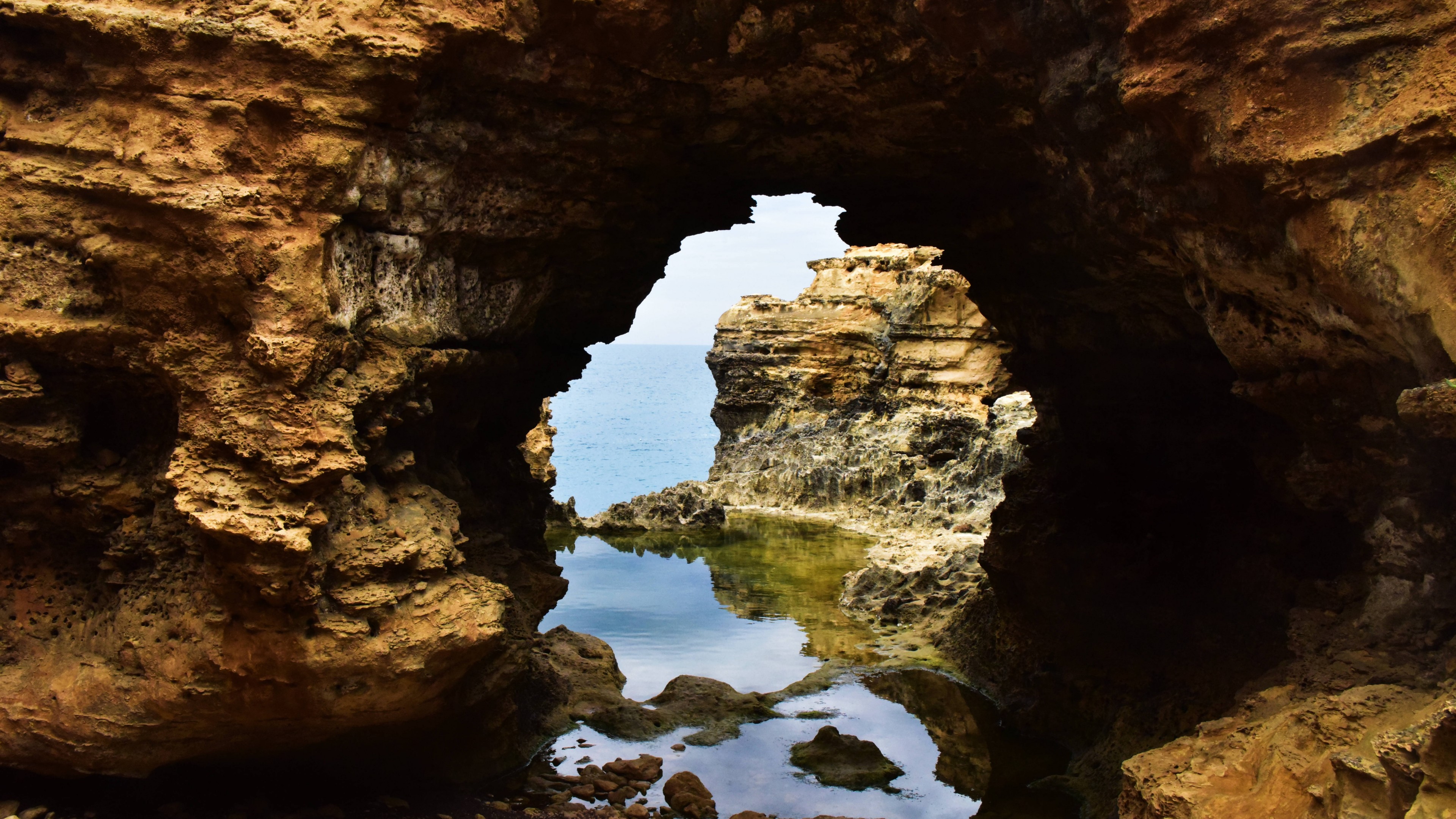 Проход в пещере в море - 3840x2160