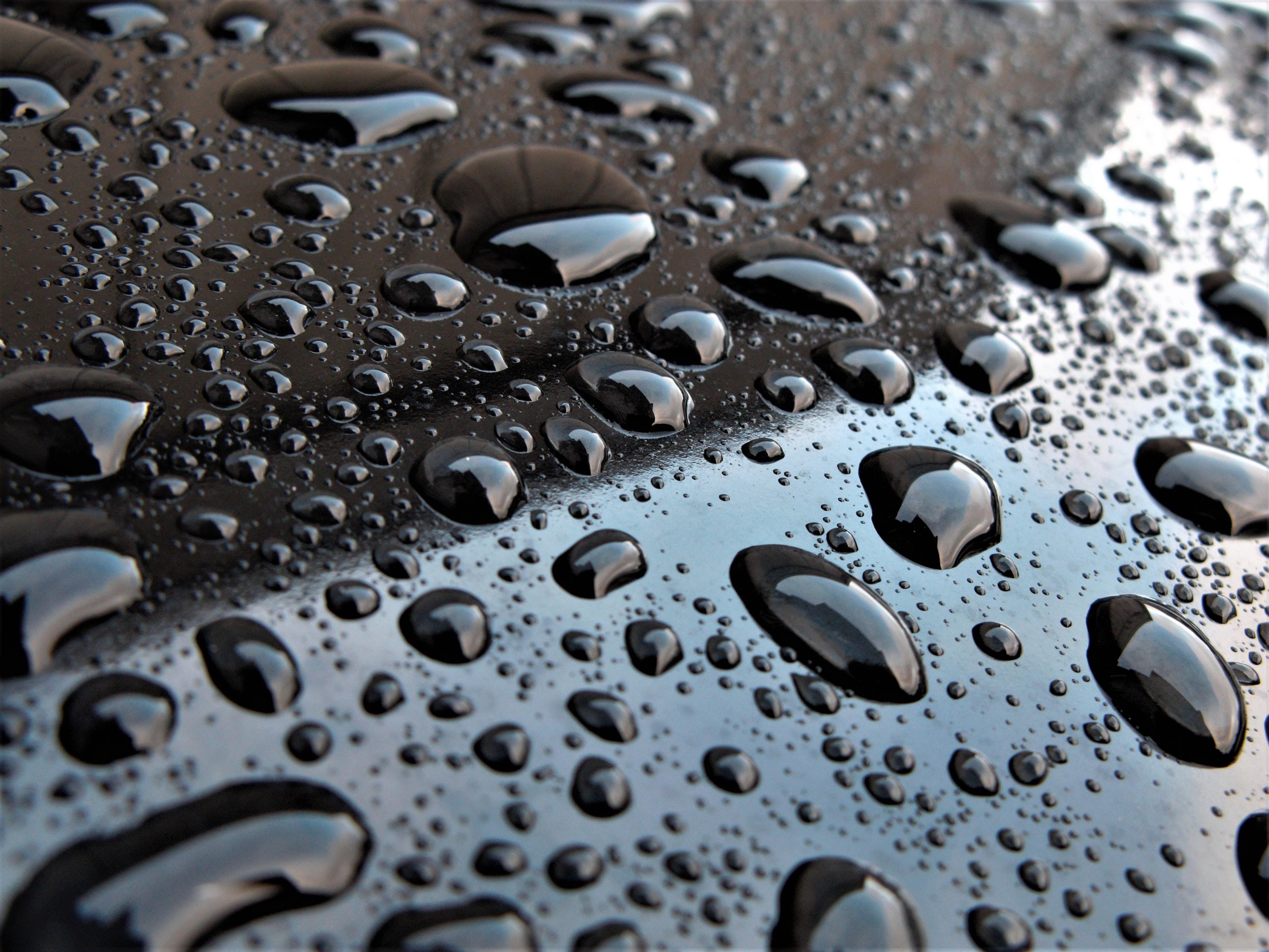 Капли воды на черной глянцевой поверхности - 3200x2400