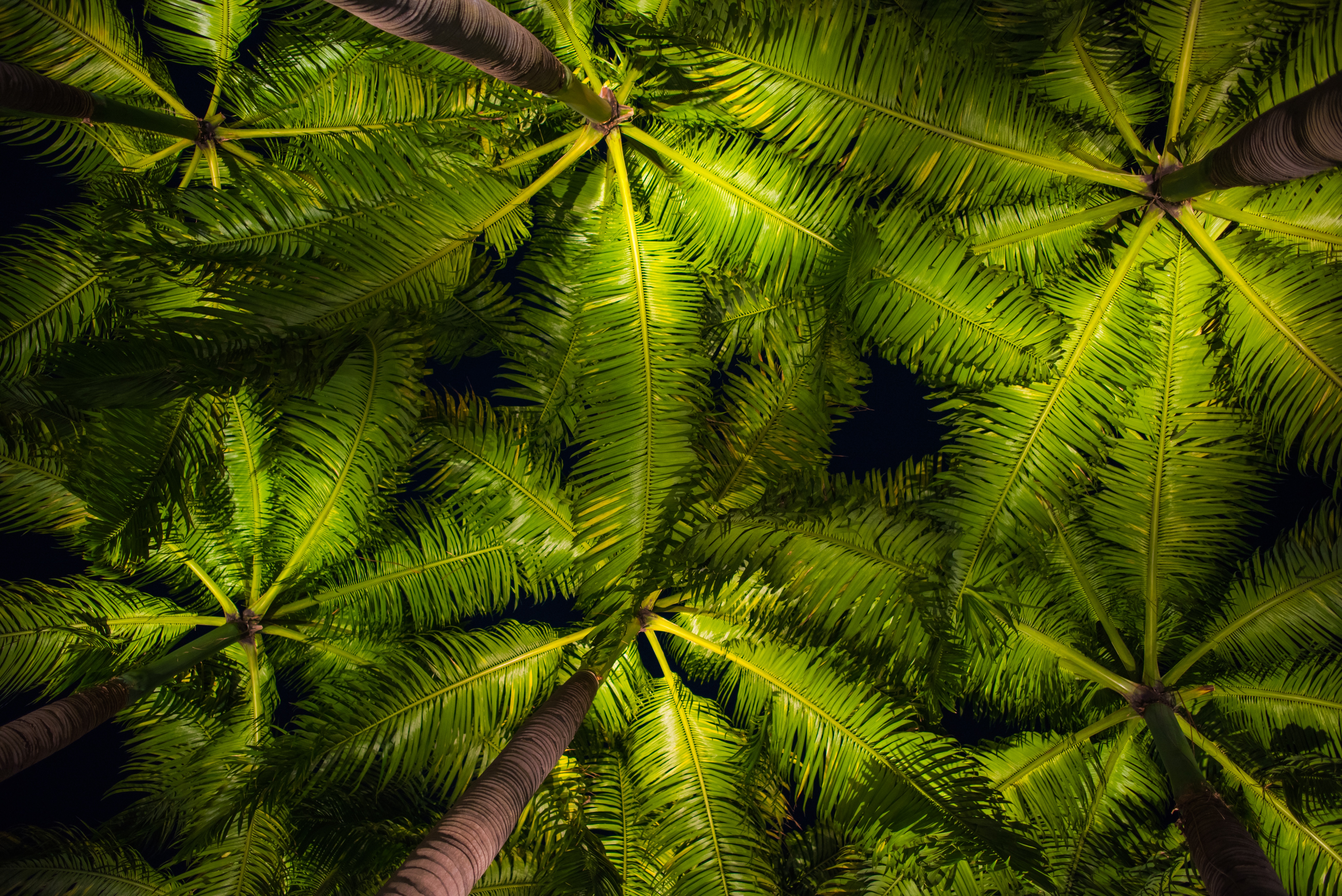 Зеленые пальмовые листья вид снизу - 6016x4016