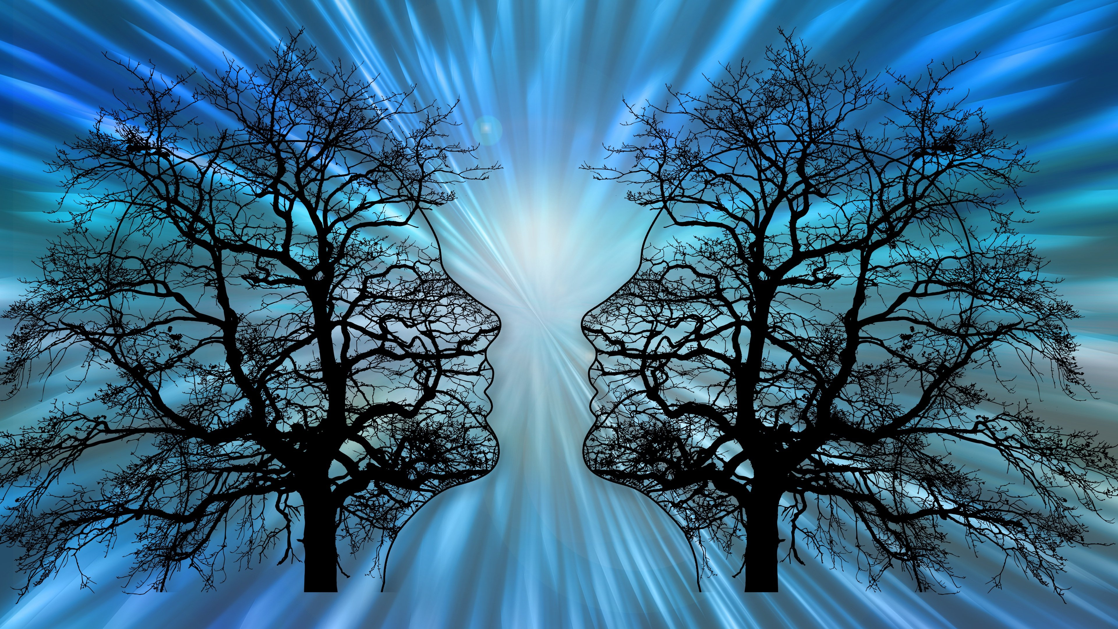 Два силуэта на опавших деревьях - 3840x2160