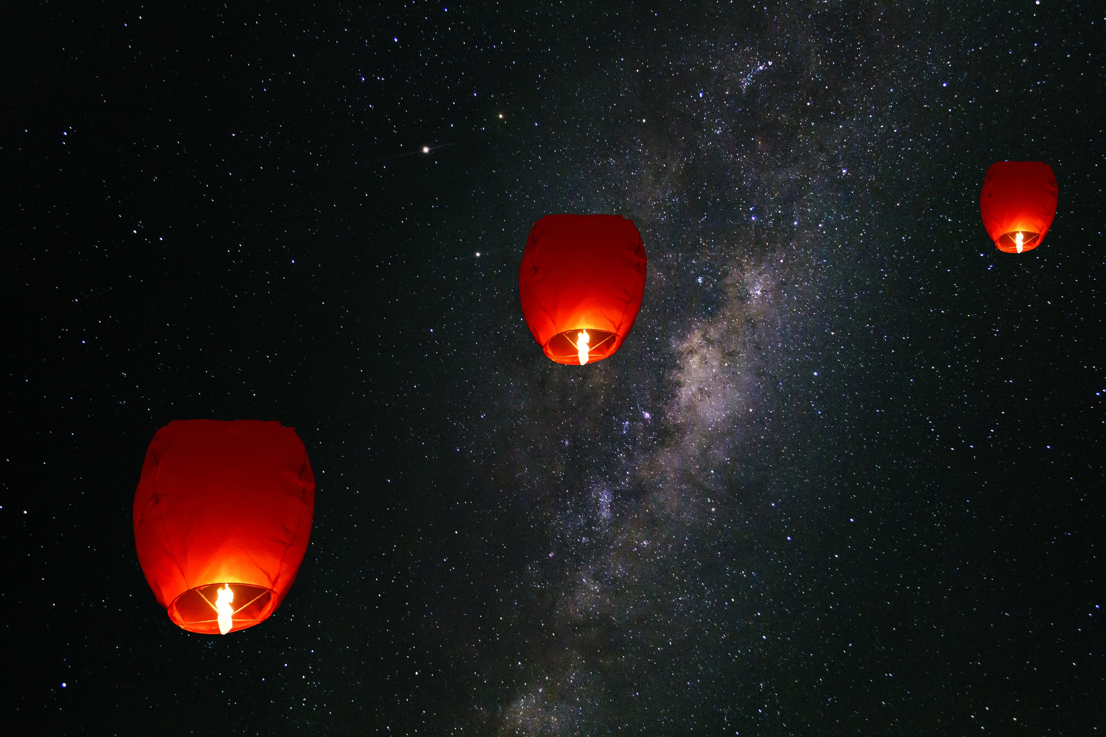 Зажженные китайские фонарики в небе - 4608x3072