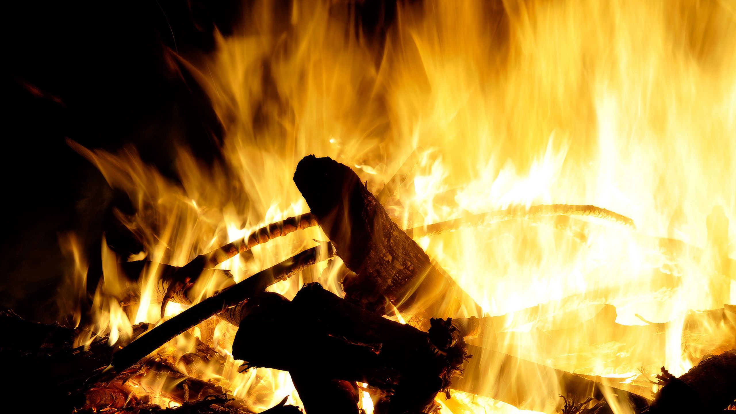 Яркое горячее пламя костра крупным планом - 2560x1440