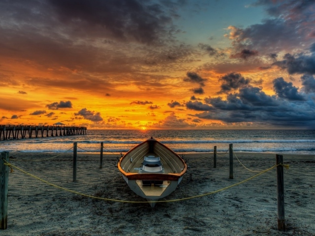 Лодка на пляже в песке Обои для рабочего стола 640x480