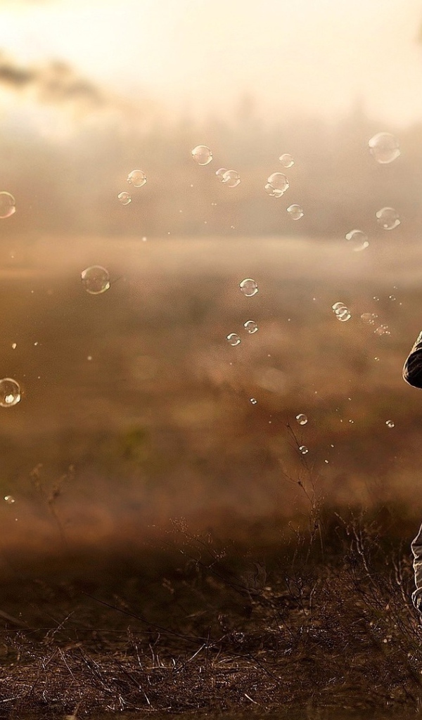 Мальчик запускает мыльные пузыри Обои для рабочего стола 600x1024