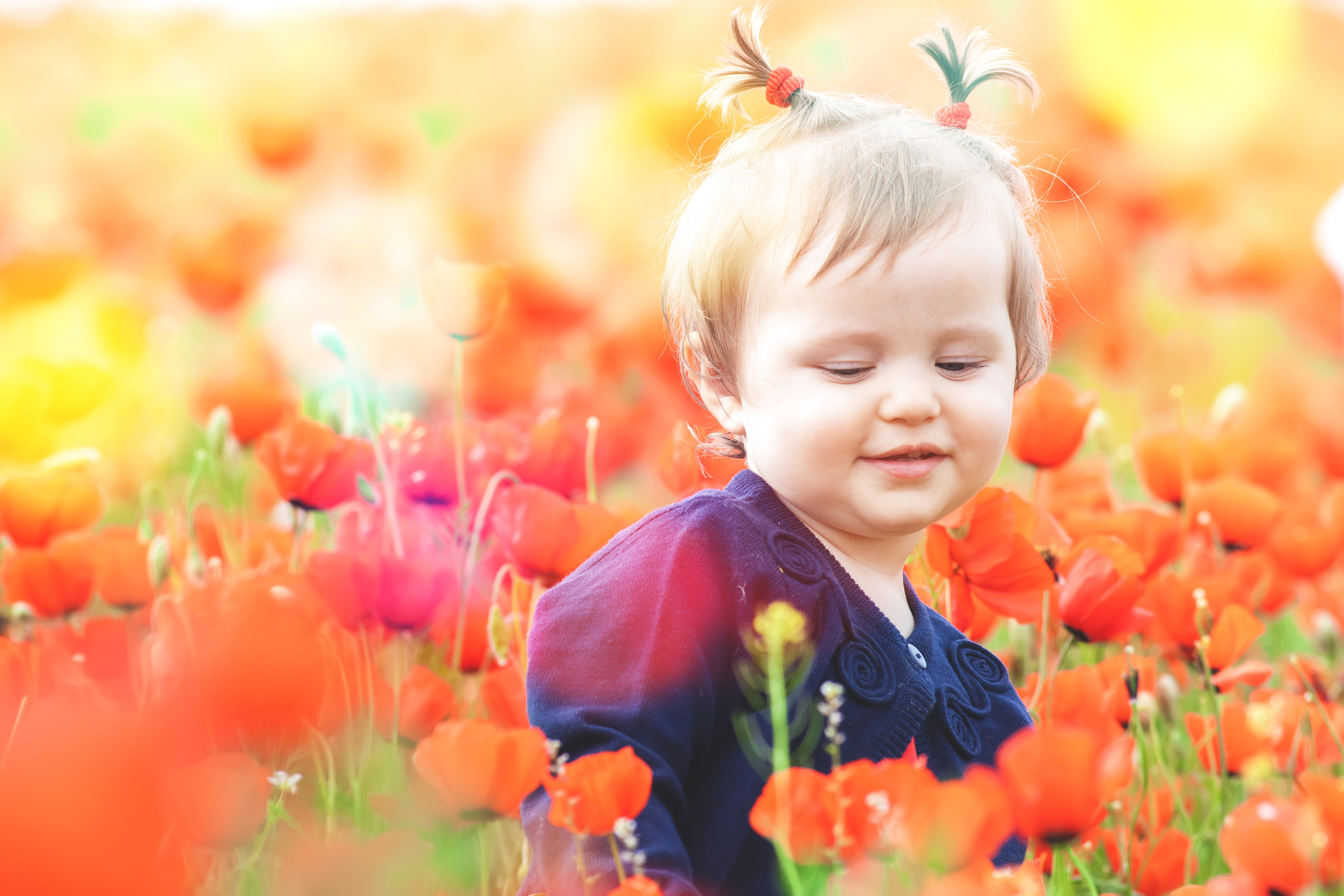Маленькая девочка в красных цветах мака - 4800x3200