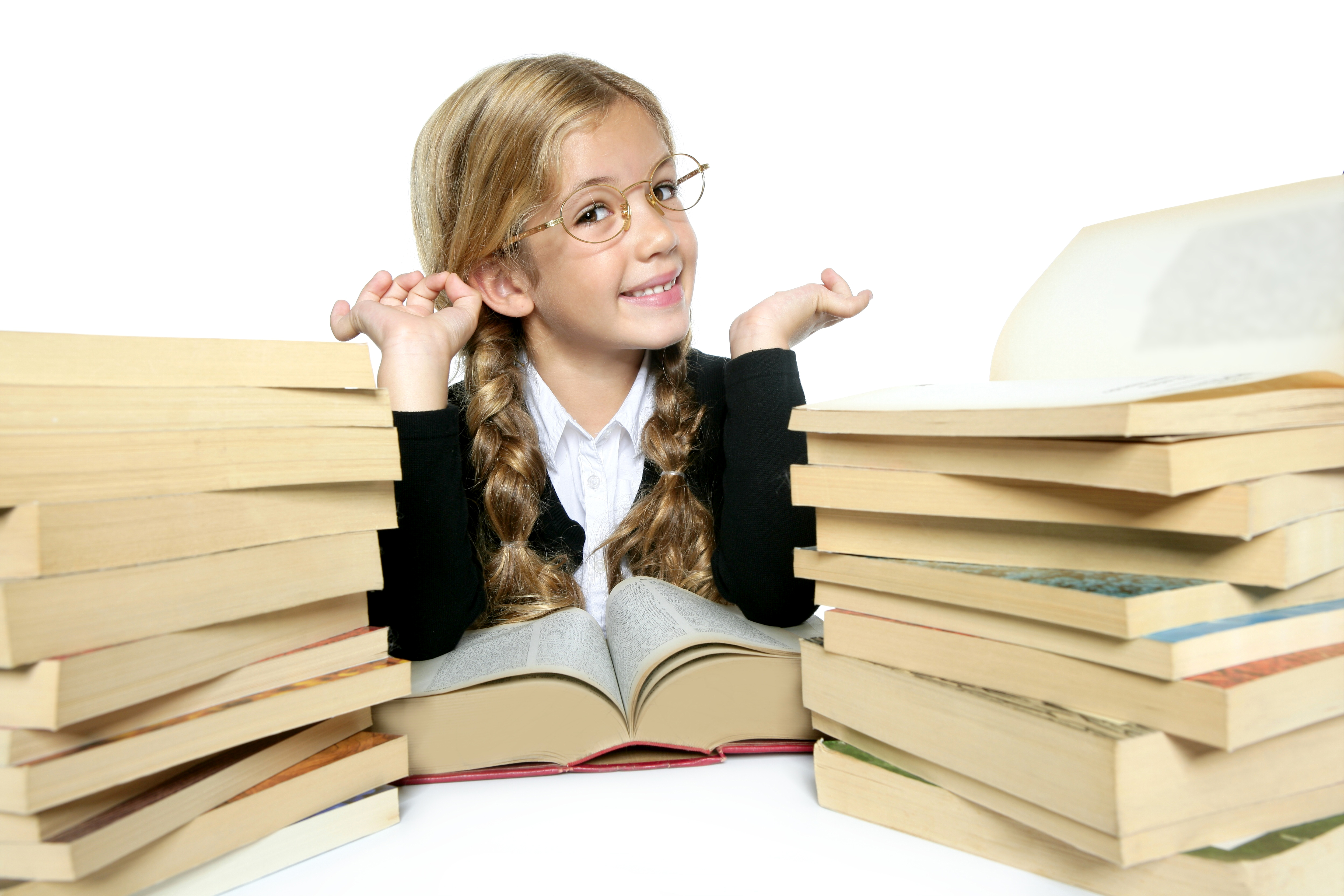 Маленькая девочка школьница в очках с книгами - 4992x3328