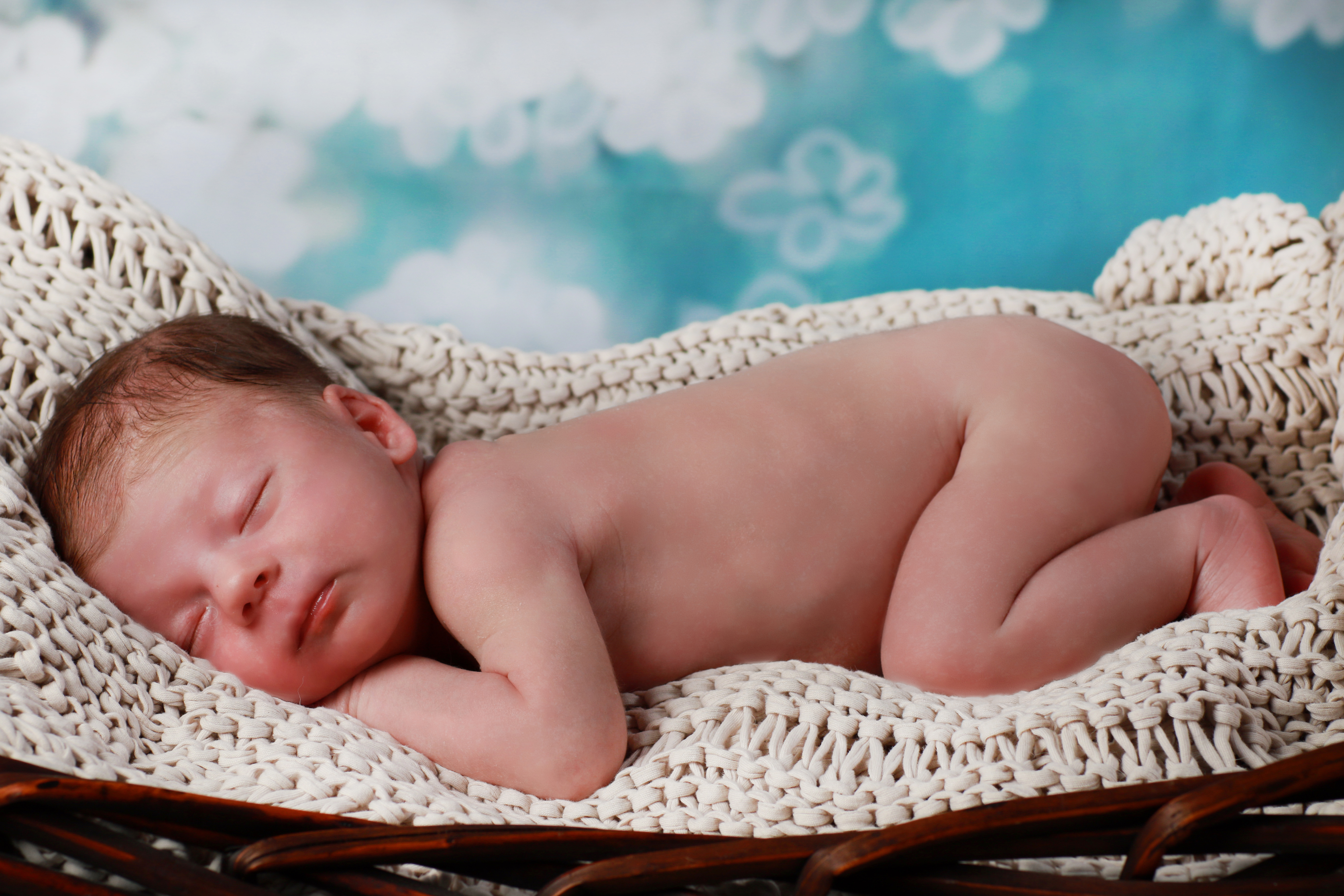 Маленький спящий грудной ребенок в колыбели - 4500x3000