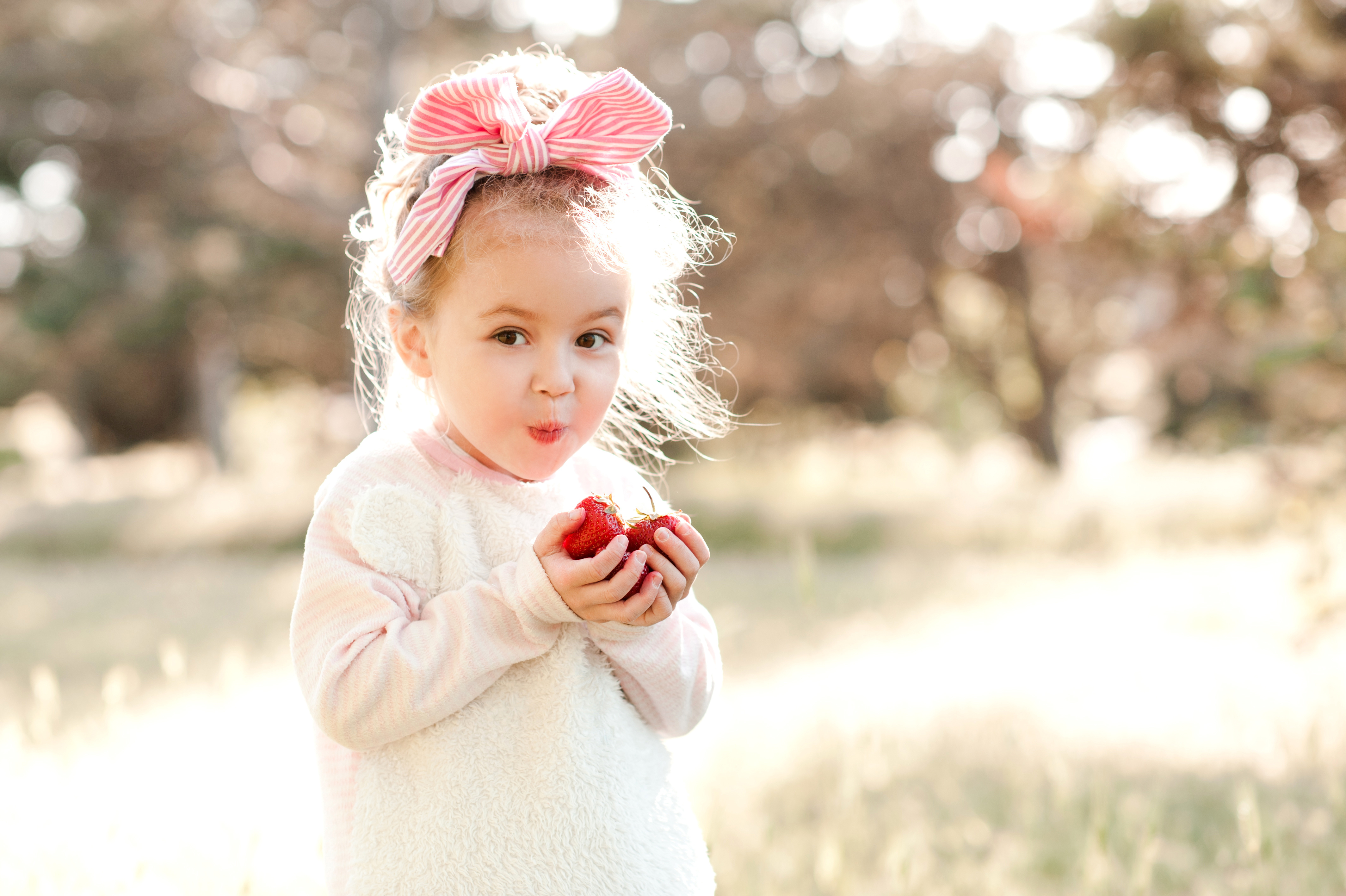 Милая маленькая девочка ест клубнику - 4256x2832