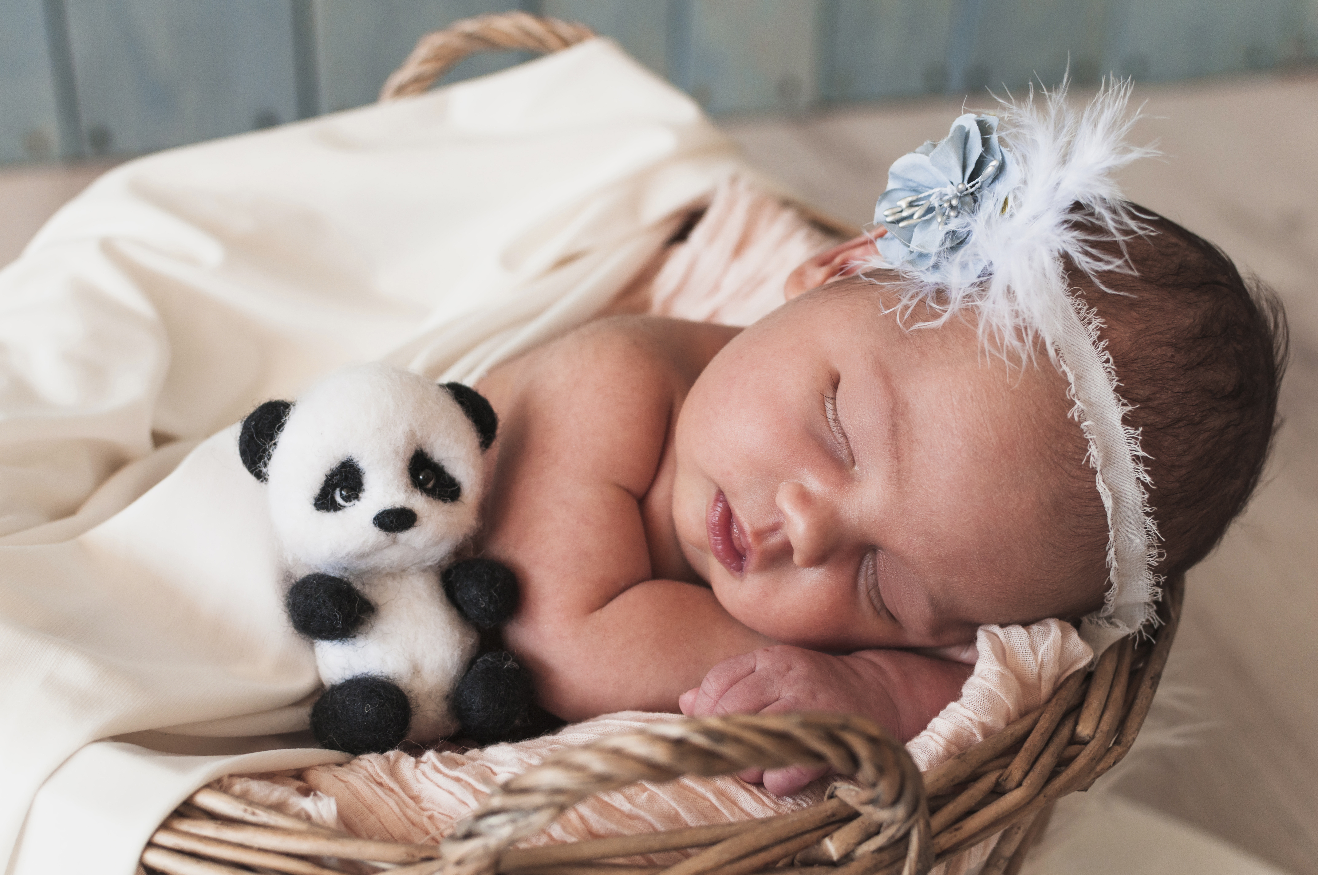 Маленькая спящая девочка с игрушечной пандой - 4288x2848
