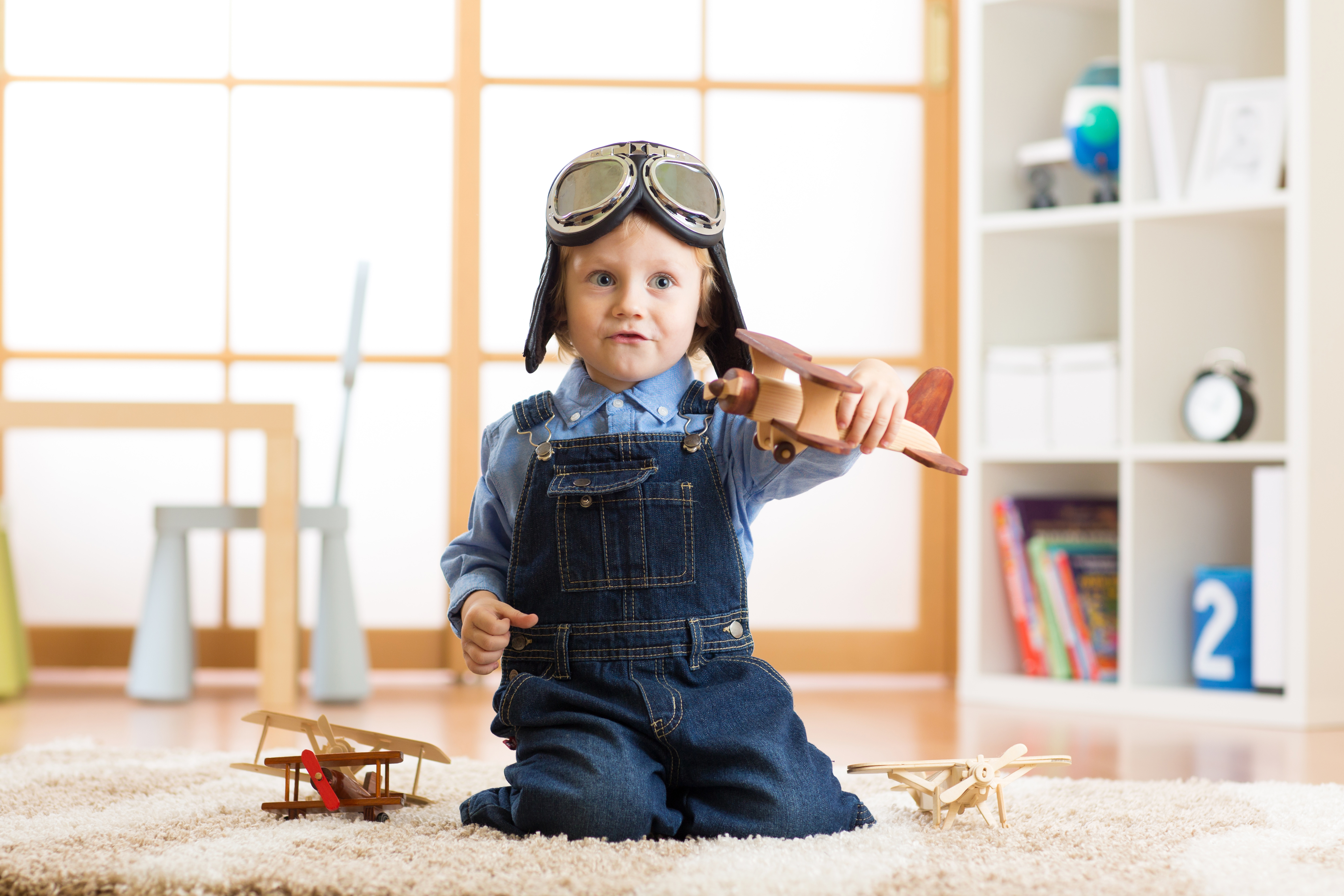Маленький будущий летчик играет с самолетом - 5019x3346
