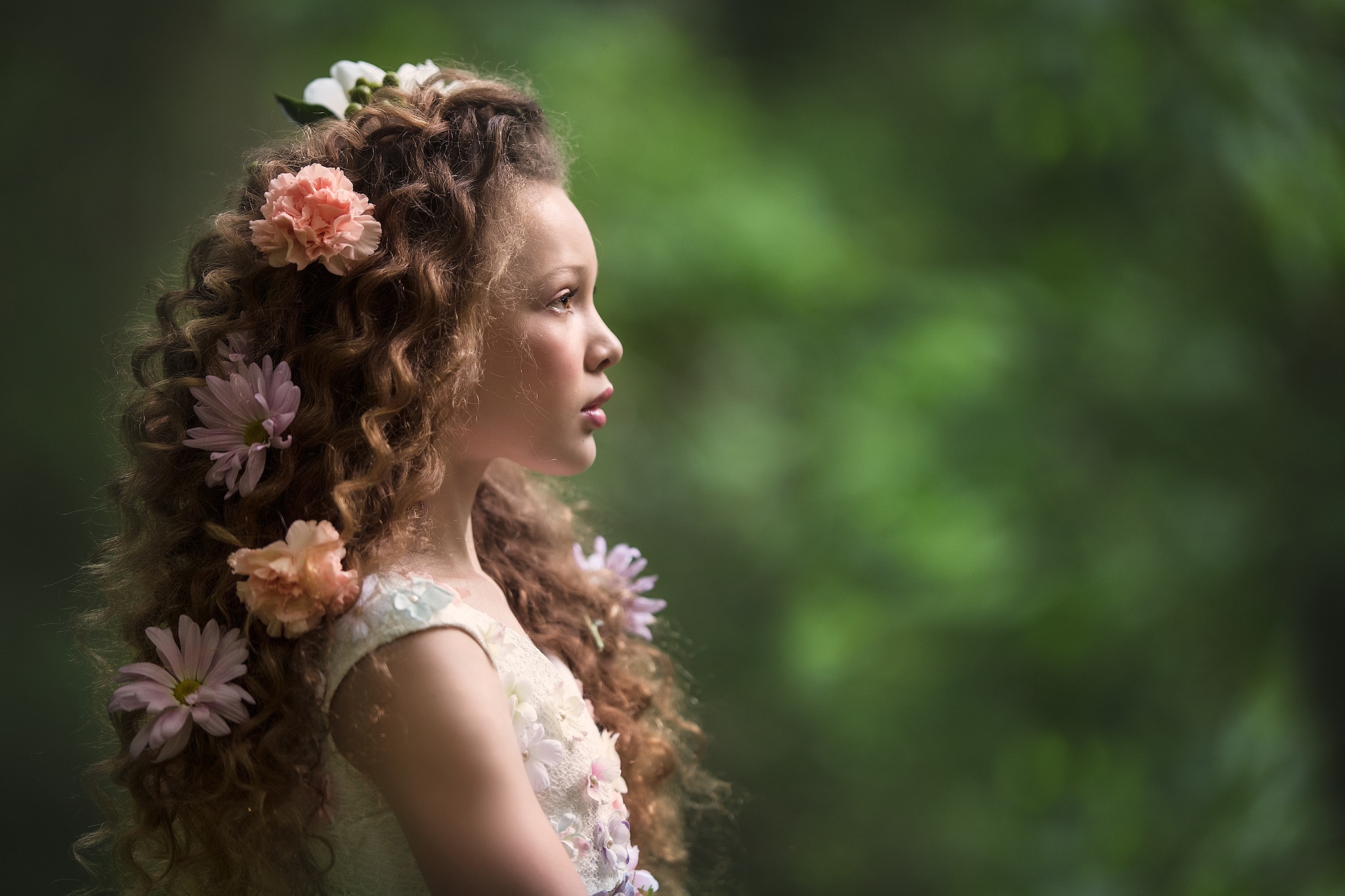 Девочка с красивыми длинными волосами с цветами - 2048x1365