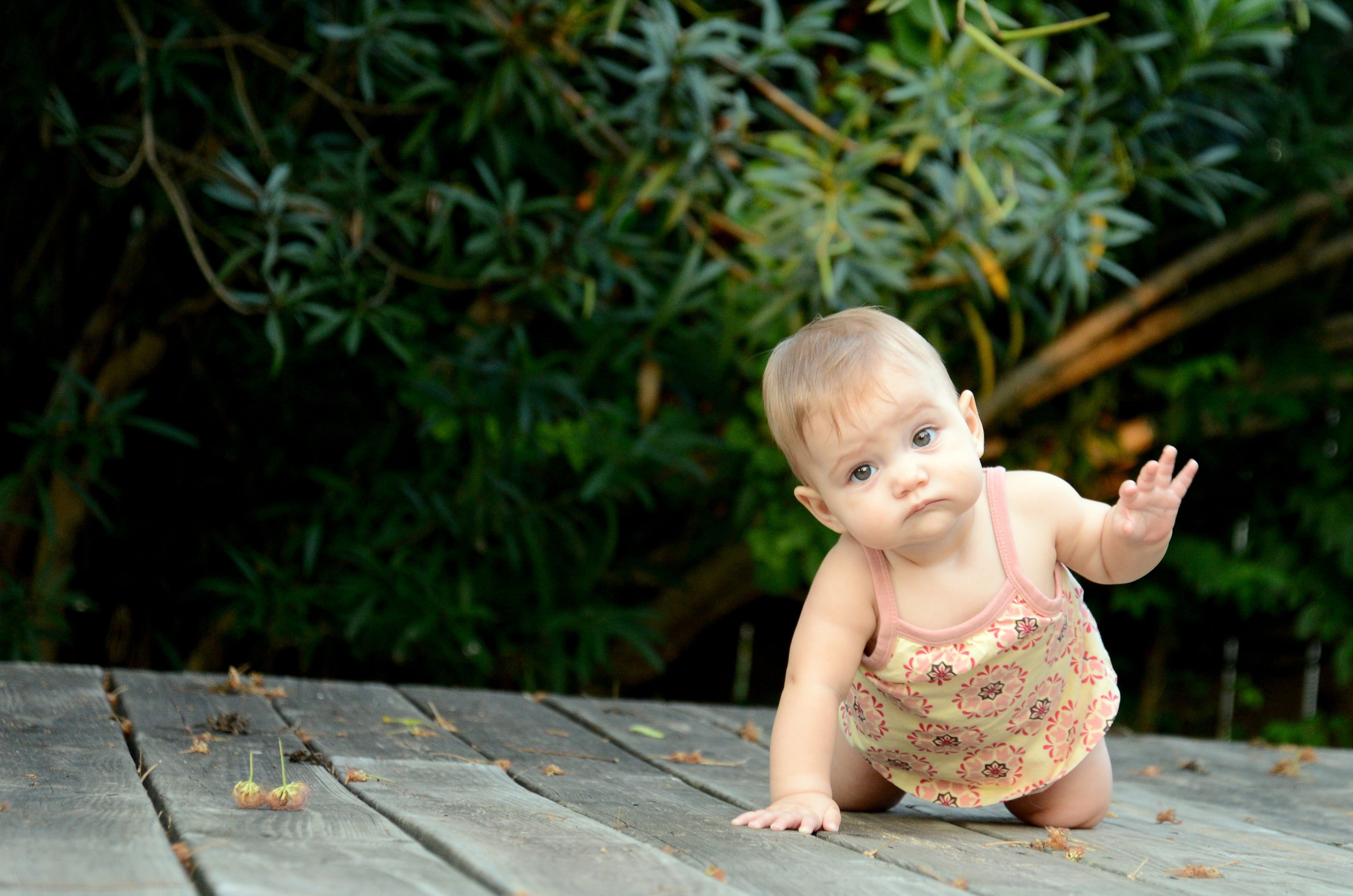 Маленькая девочка ползет по деревянному мосту - 3701x2451