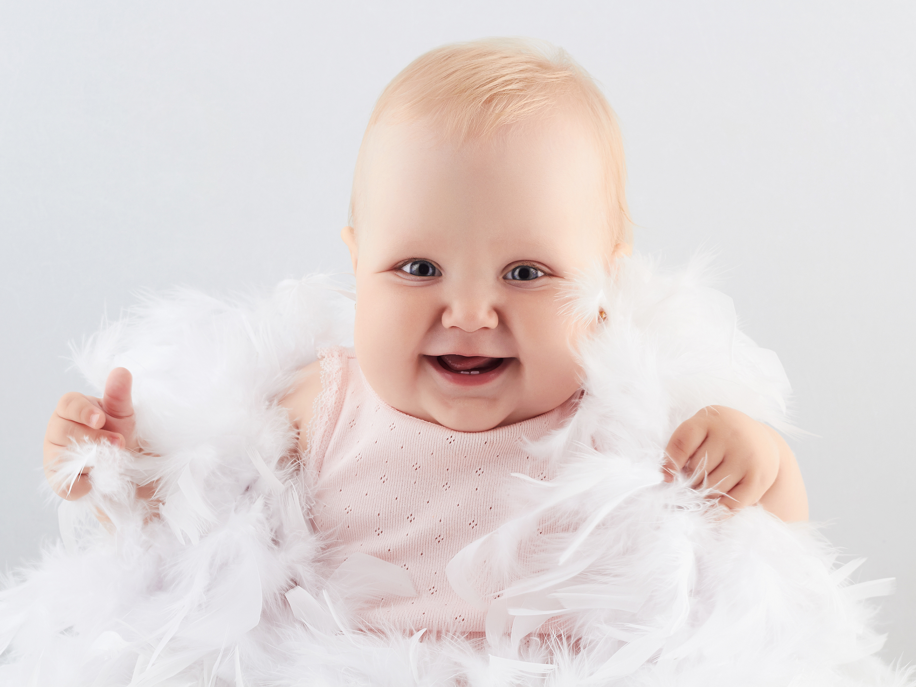 Смеющаяся маленькая девочка с перьями - 3067x2300