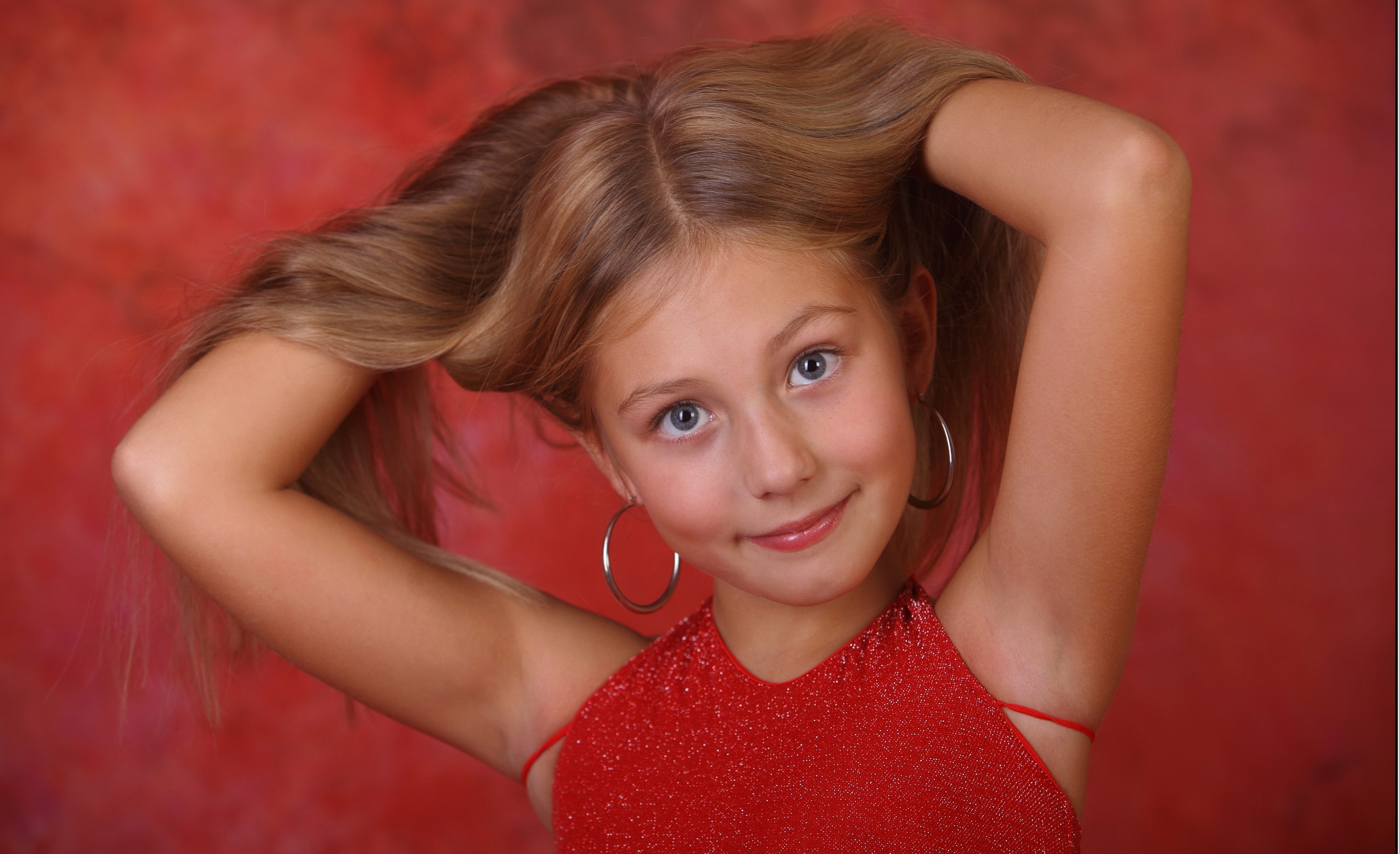 Красивая маленькая девочка с руками в волосах - 3951x2409