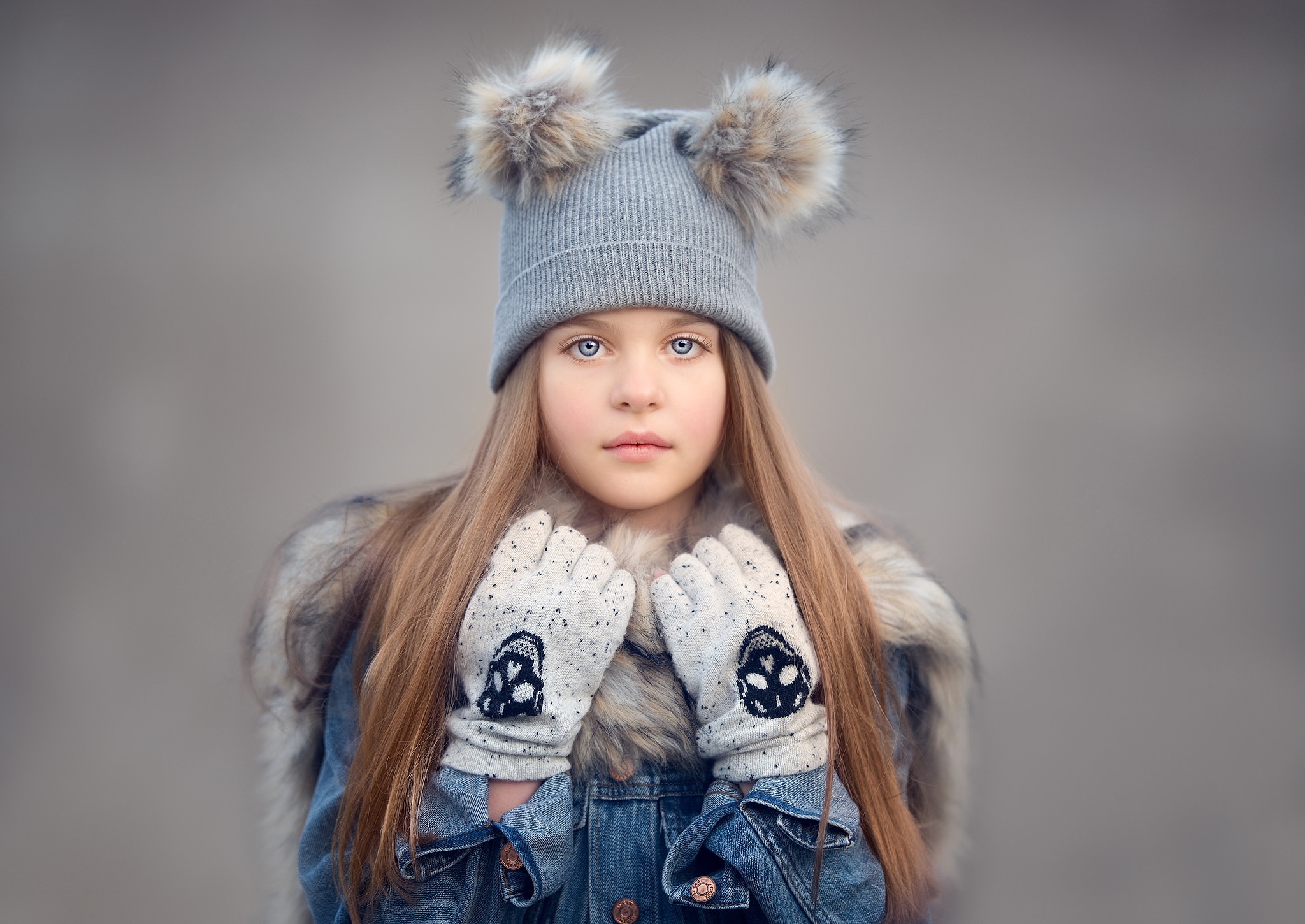 Красивая голубоглазая девочка в теплой шапке - 2048x1450