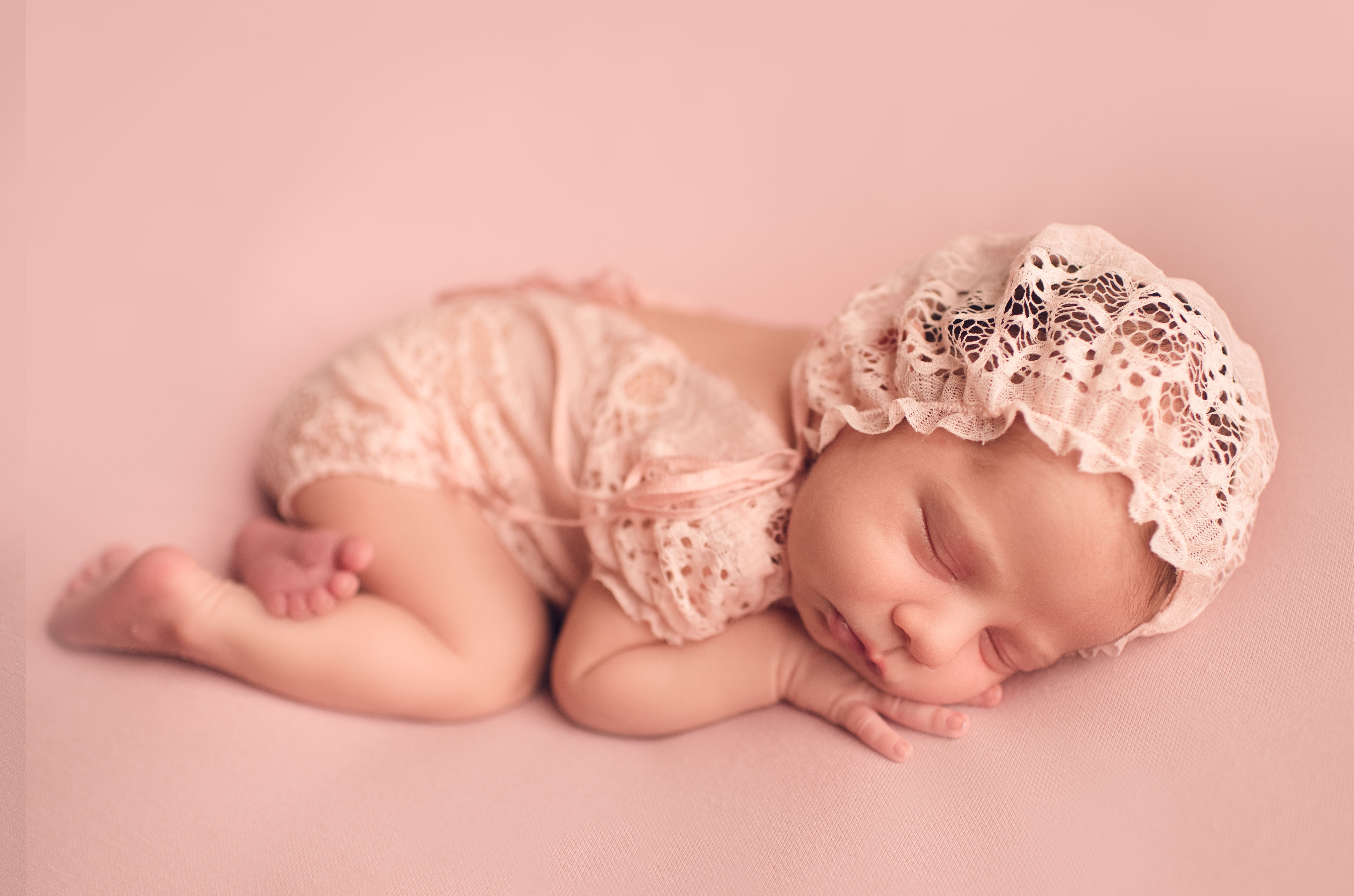 Обои: Маленький спящий грудной ребенок в розовом костюме