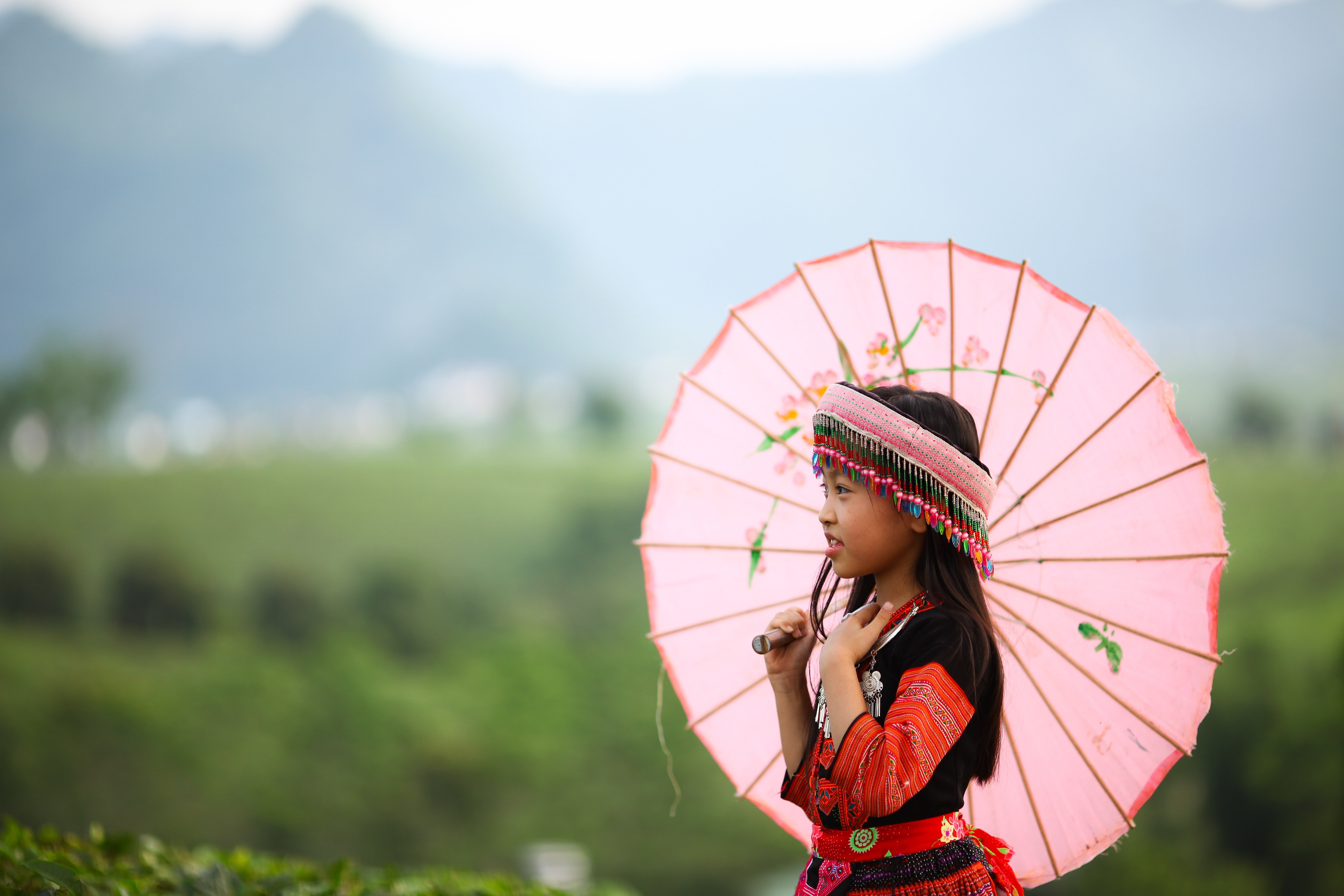 Обои: Маленькая девочка азиатка в розовым зонтом