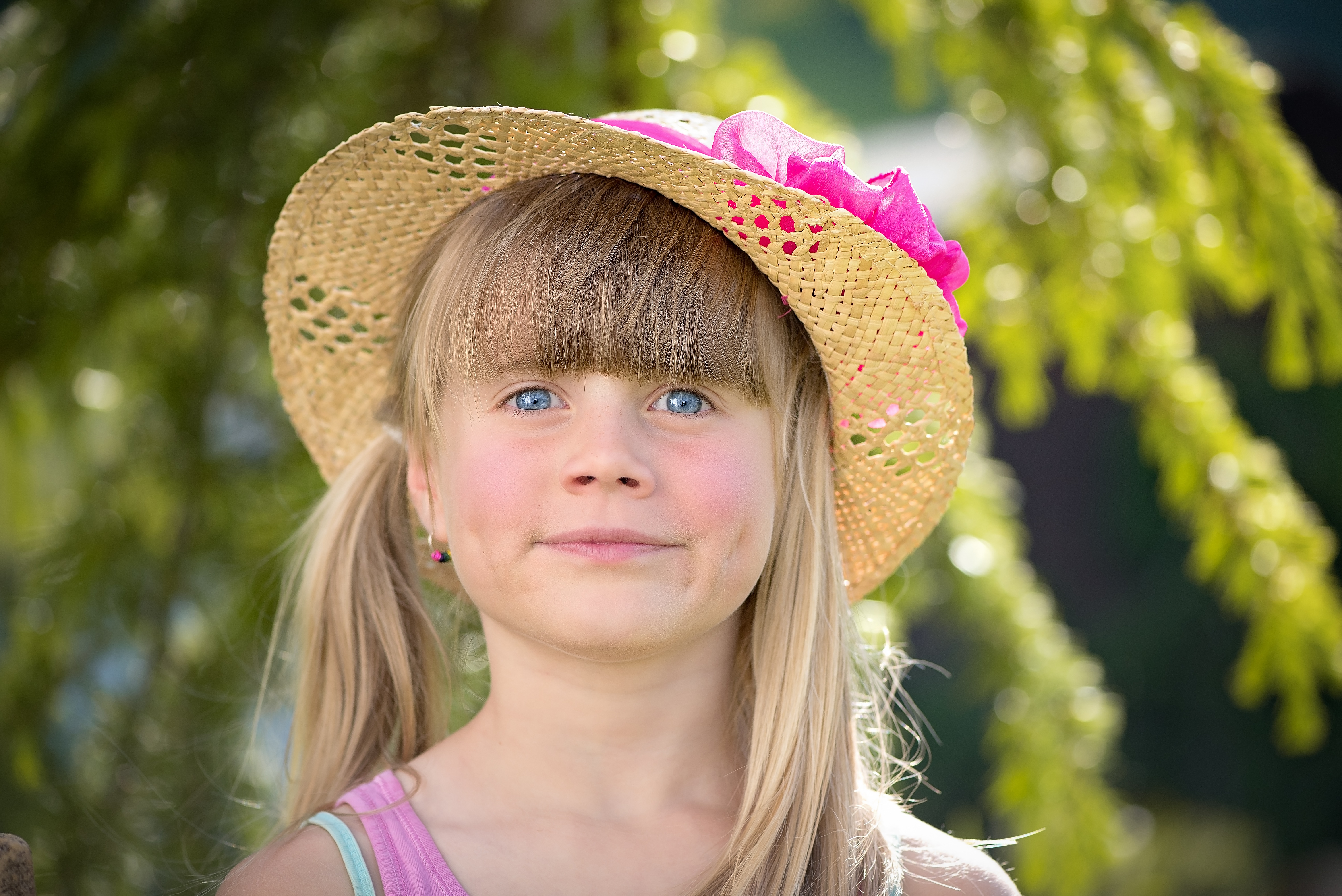 Голубоглазая девочка в соломенной шляпе - 6016x4016
