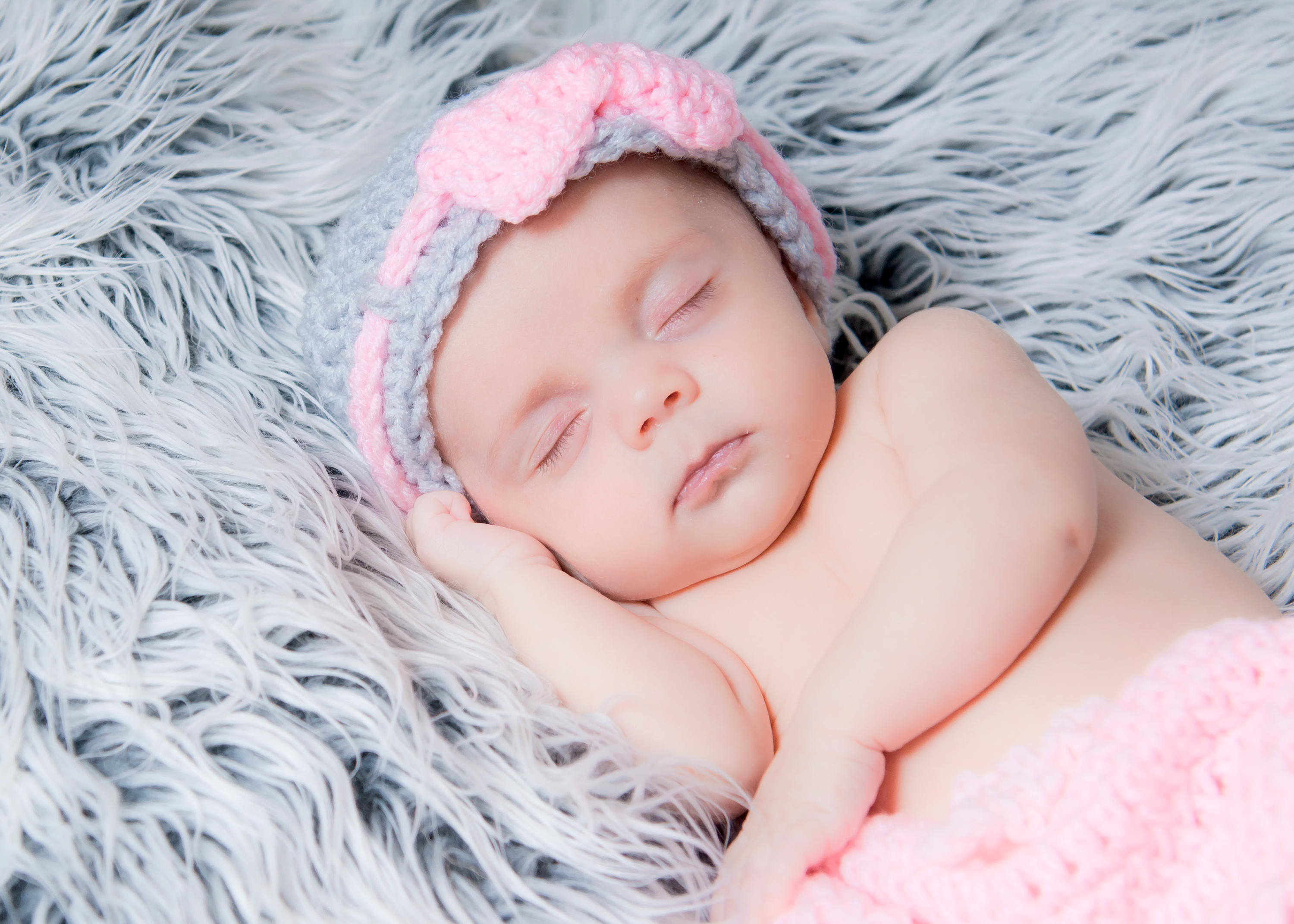 Грудной ребенок спит на меховом одеяле - 3000x2143