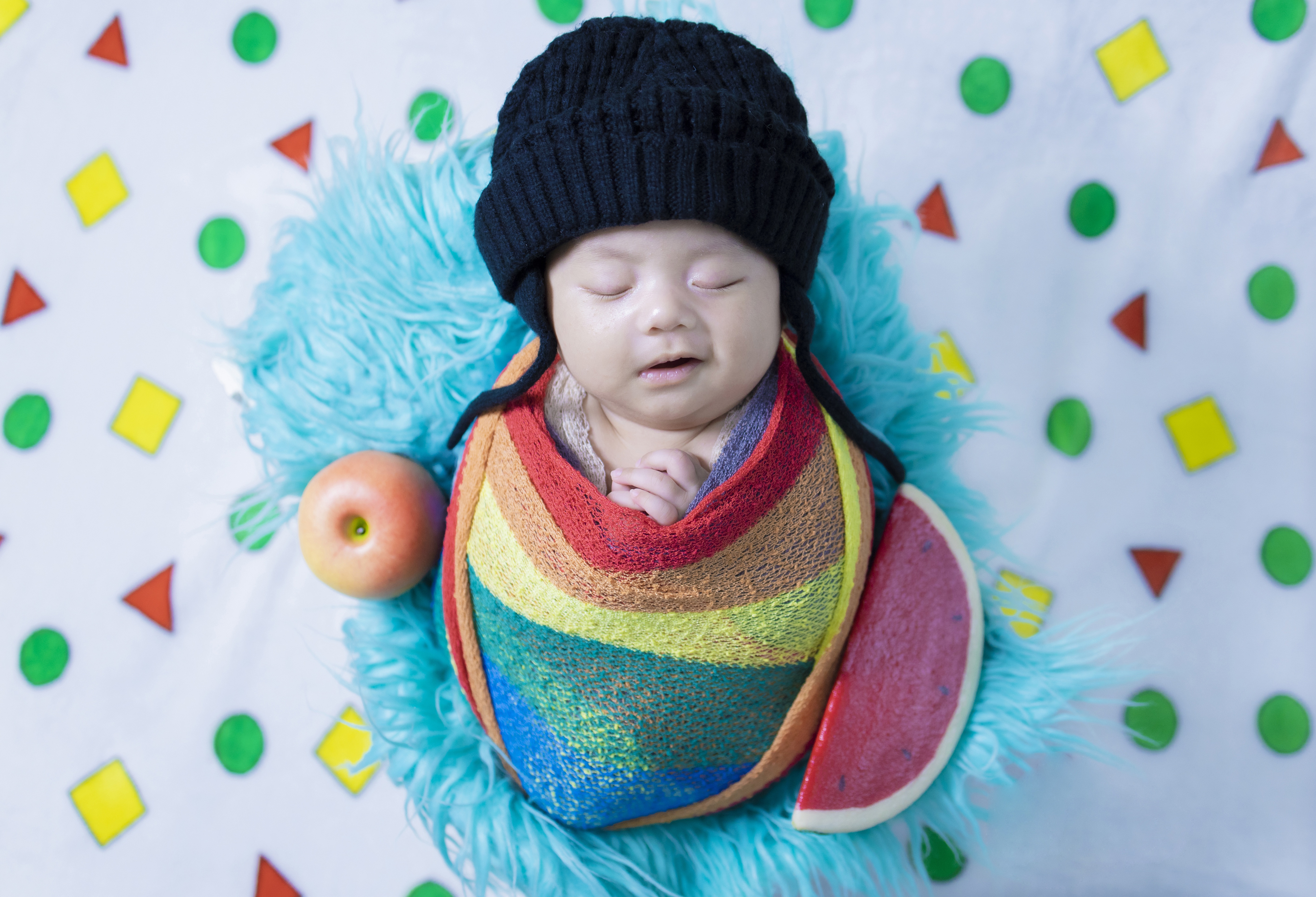 Маленький спящий ребенок в черной шапке - 5669x3864