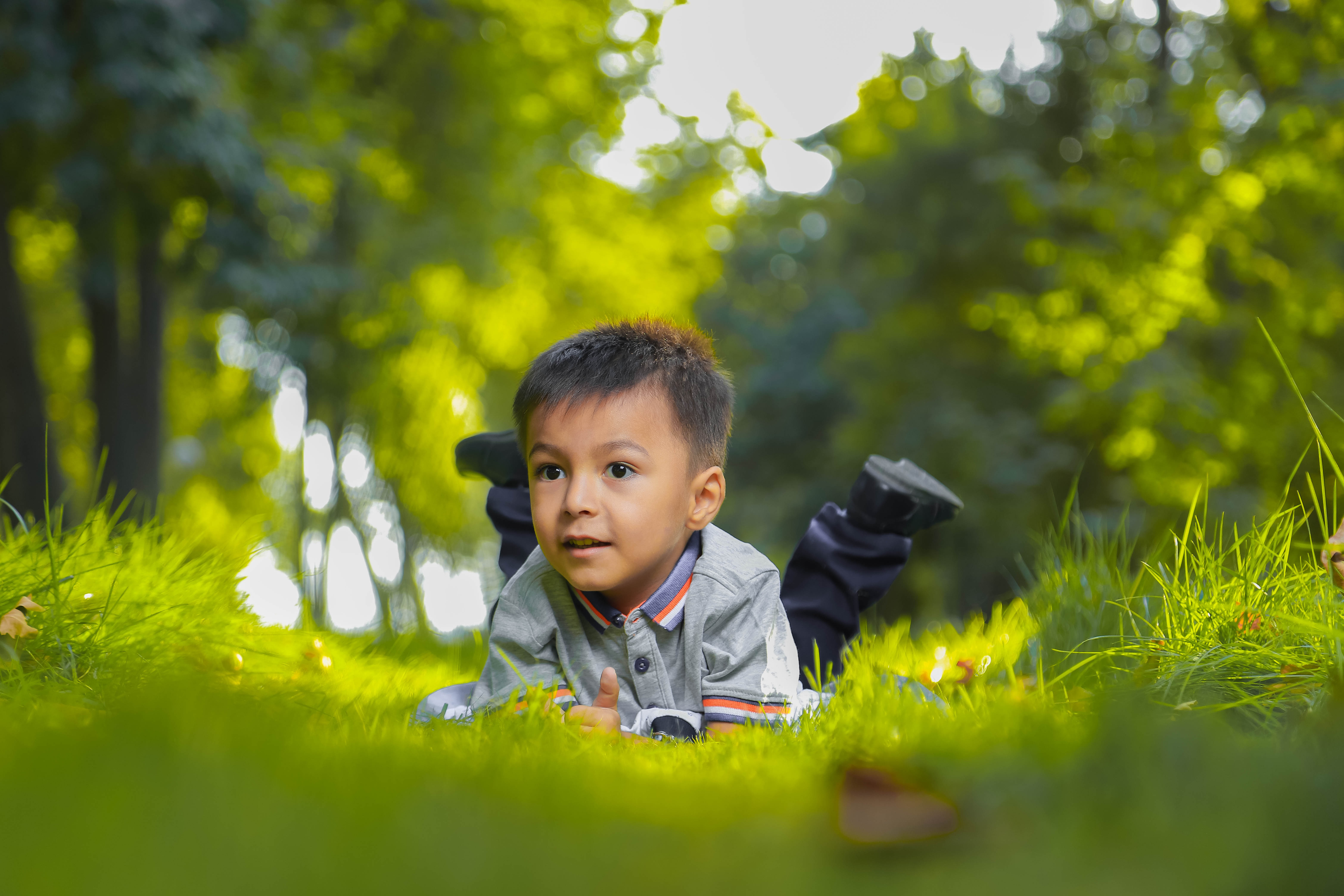 Маленький мальчик лежит на зеленой траве - 6240x4160