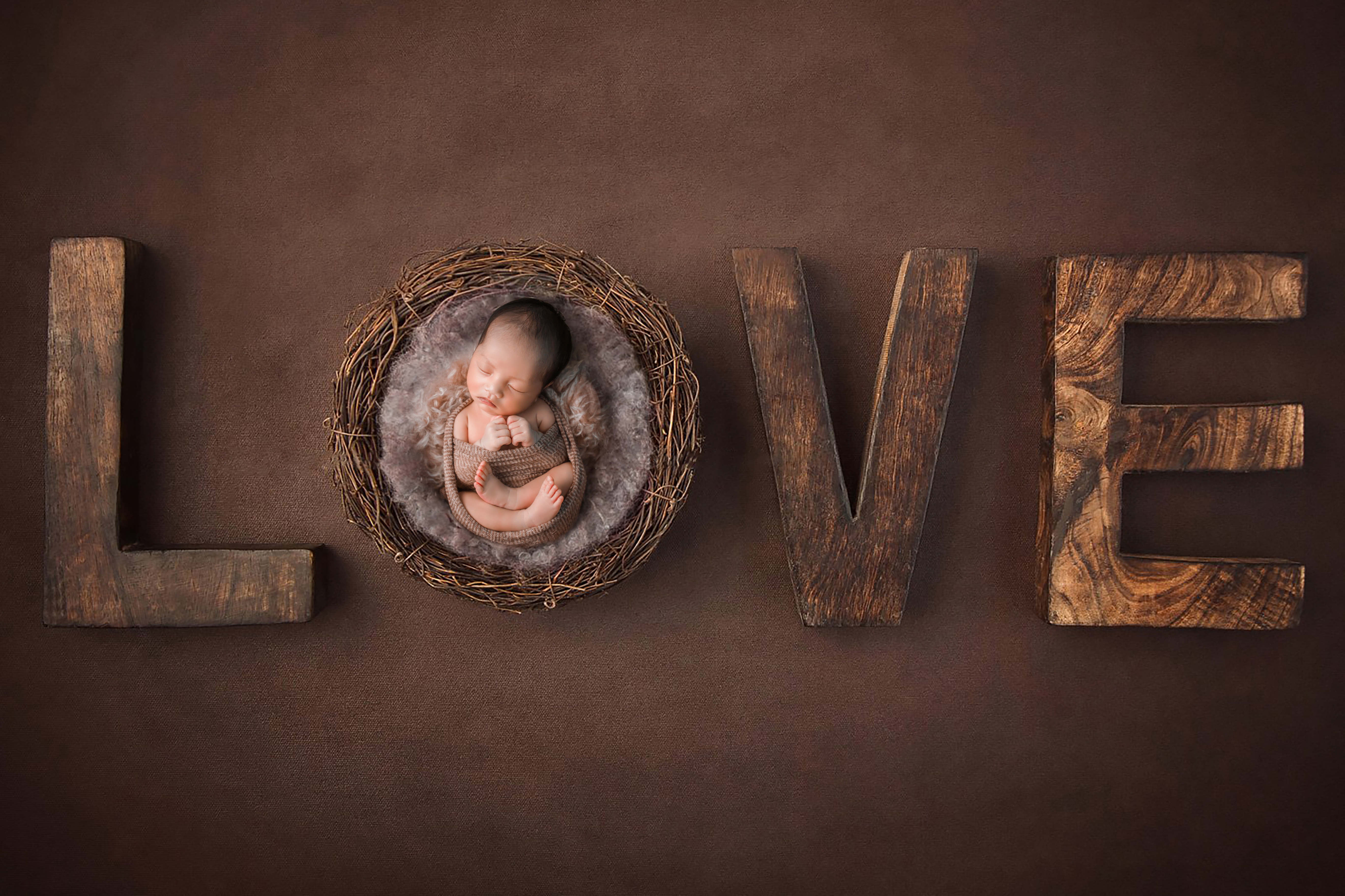 Маленький грудной ребенок с надписью любовь - 5472x3646