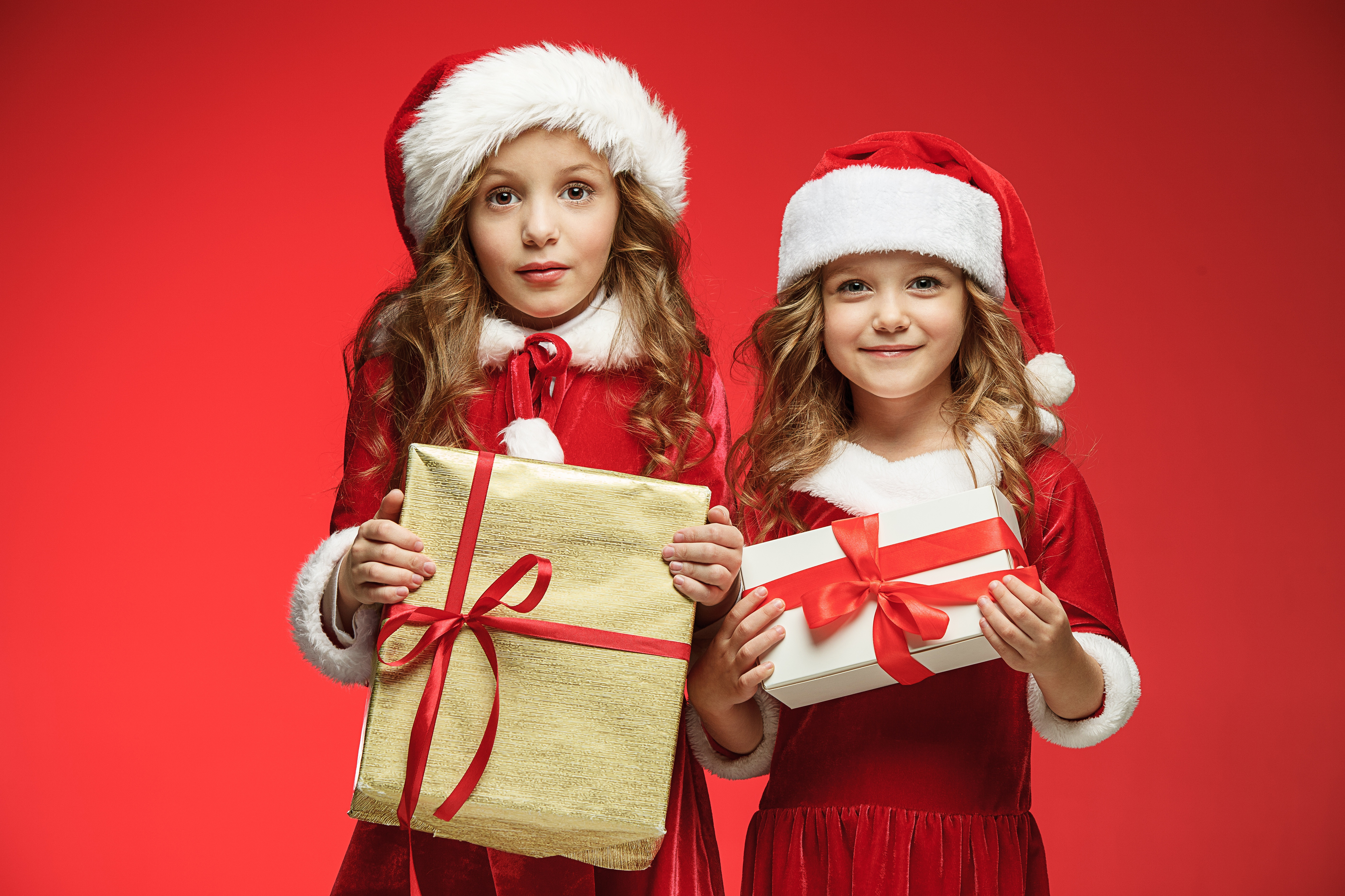 Две маленькие девочки с подарками на Рождество - 5616x3744