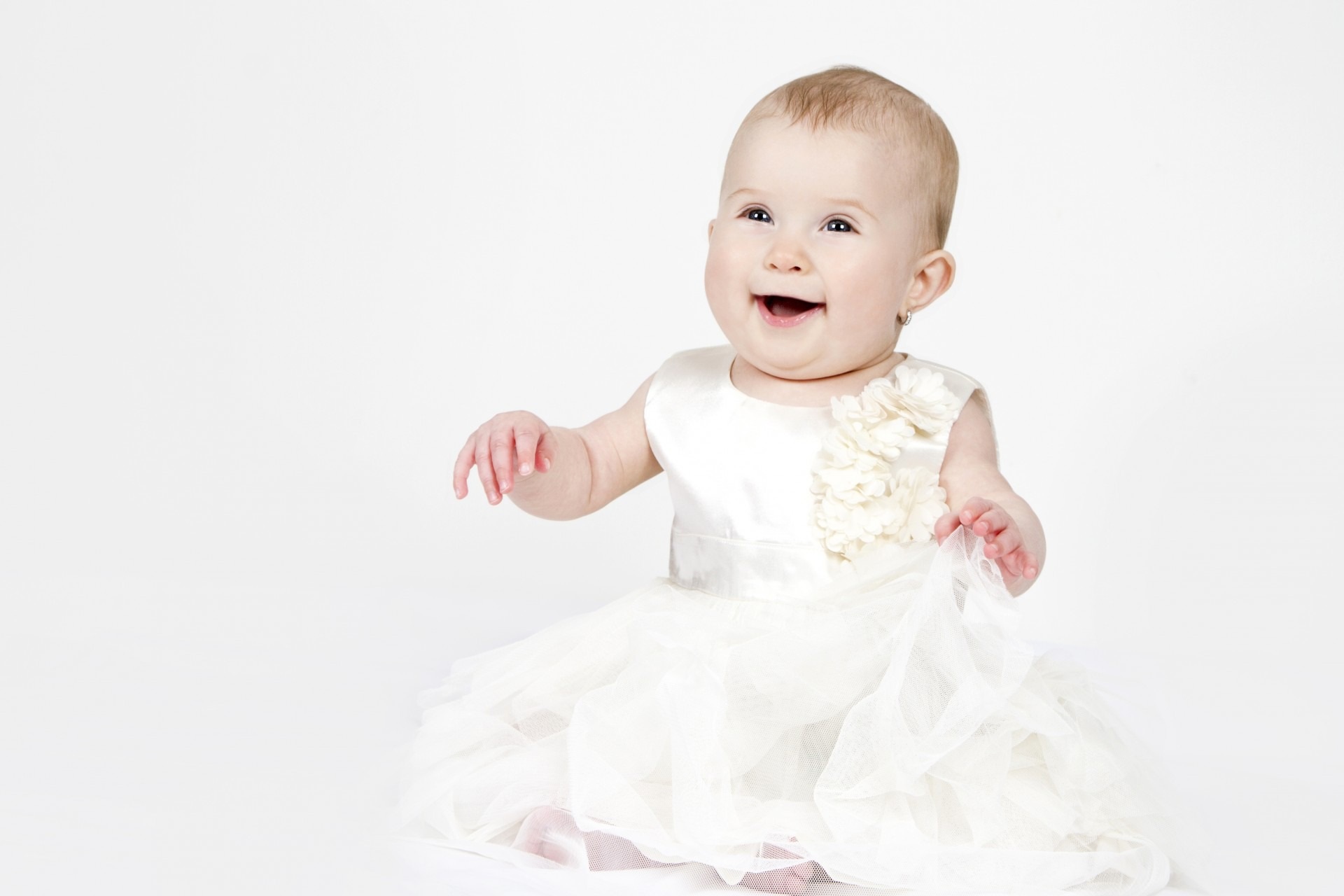 Улыбающаяся маленькая девочка в белом платье - 1920x1280