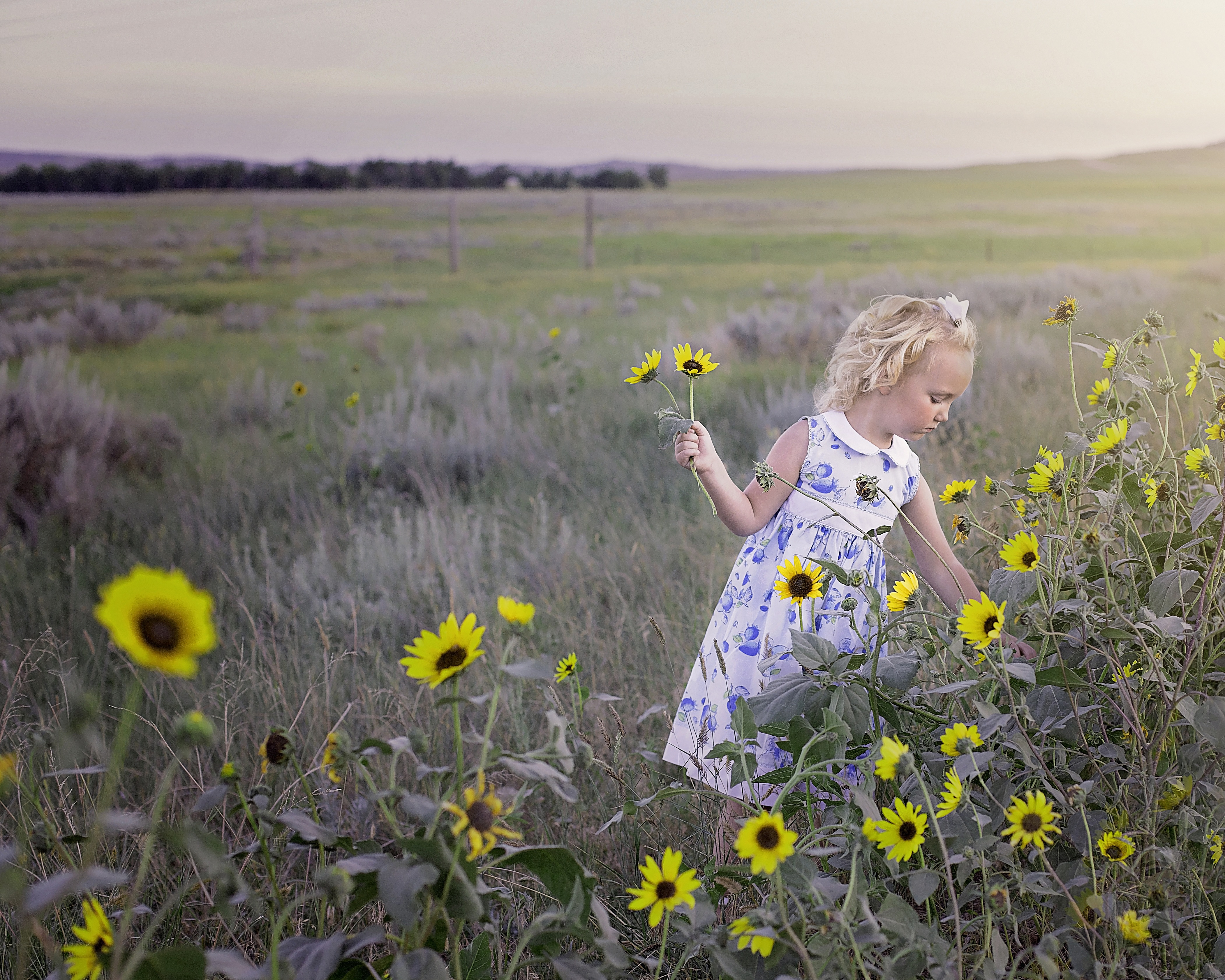 Маленькая девочка собирает желтые цветы - 4205x3364