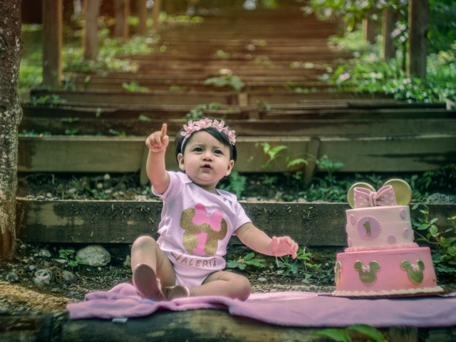Обои: Маленькая девочка именинница с тортом