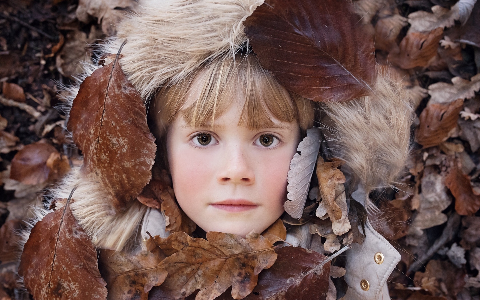 Маленькая девочка лежит в опавшей листве - 2000x1335