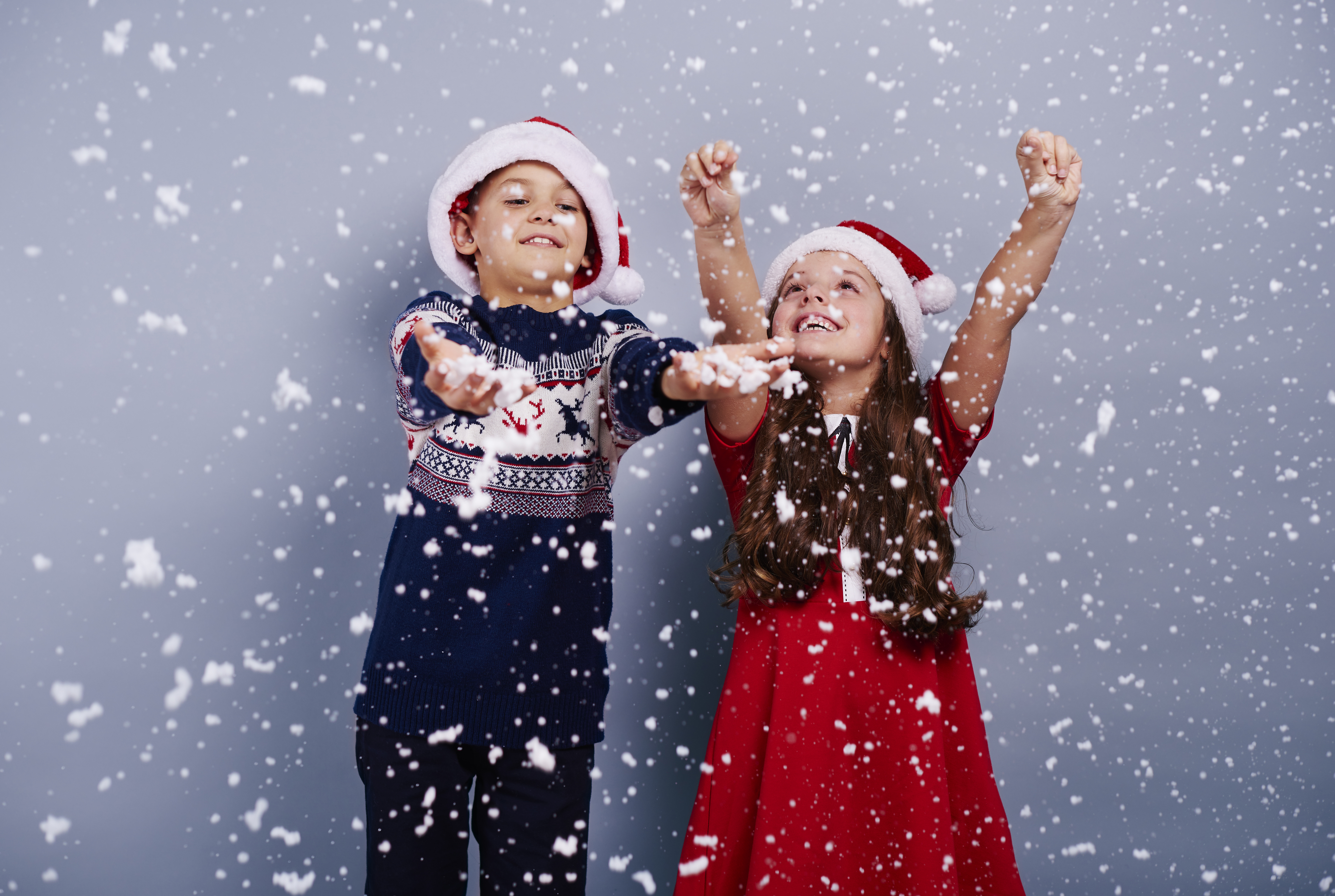 Маленькие мальчик и девочка ловят снег - 6855x4606