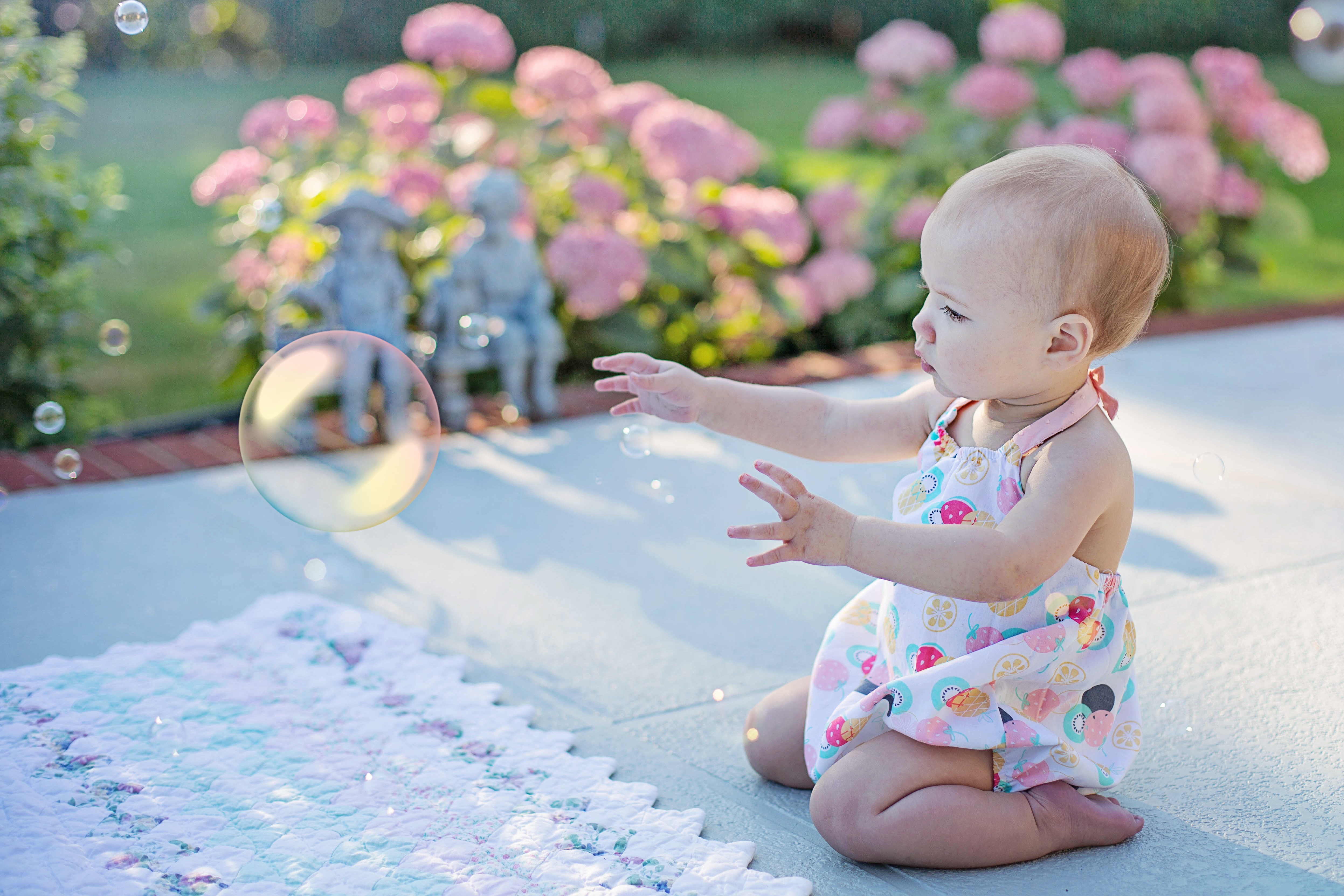 Маленькая девочка ловит мыльный пузырь - 4987x3325