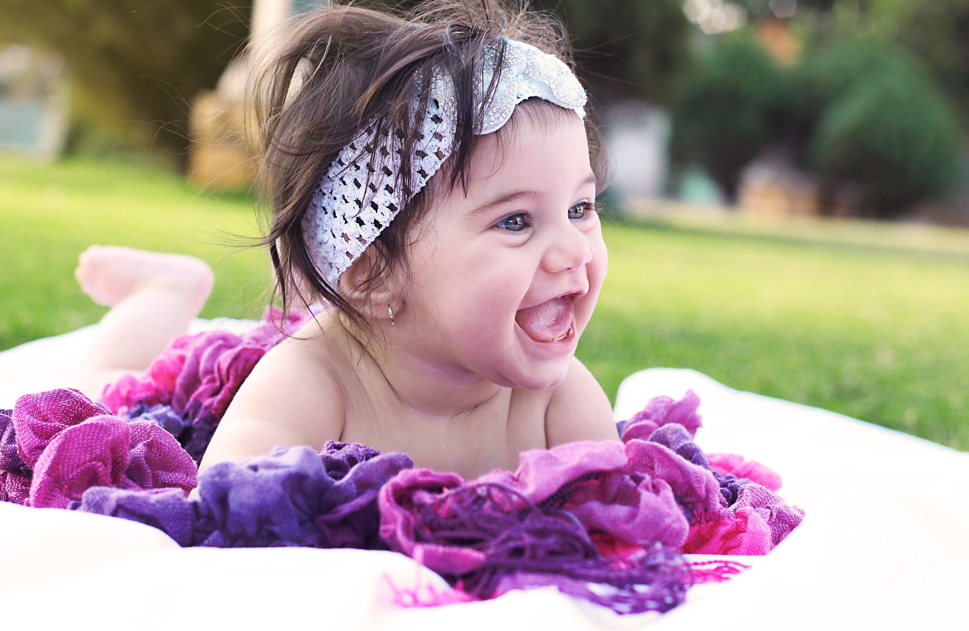 Улыбающаяся маленькая девочка с повязкой на голове - 3150x2051