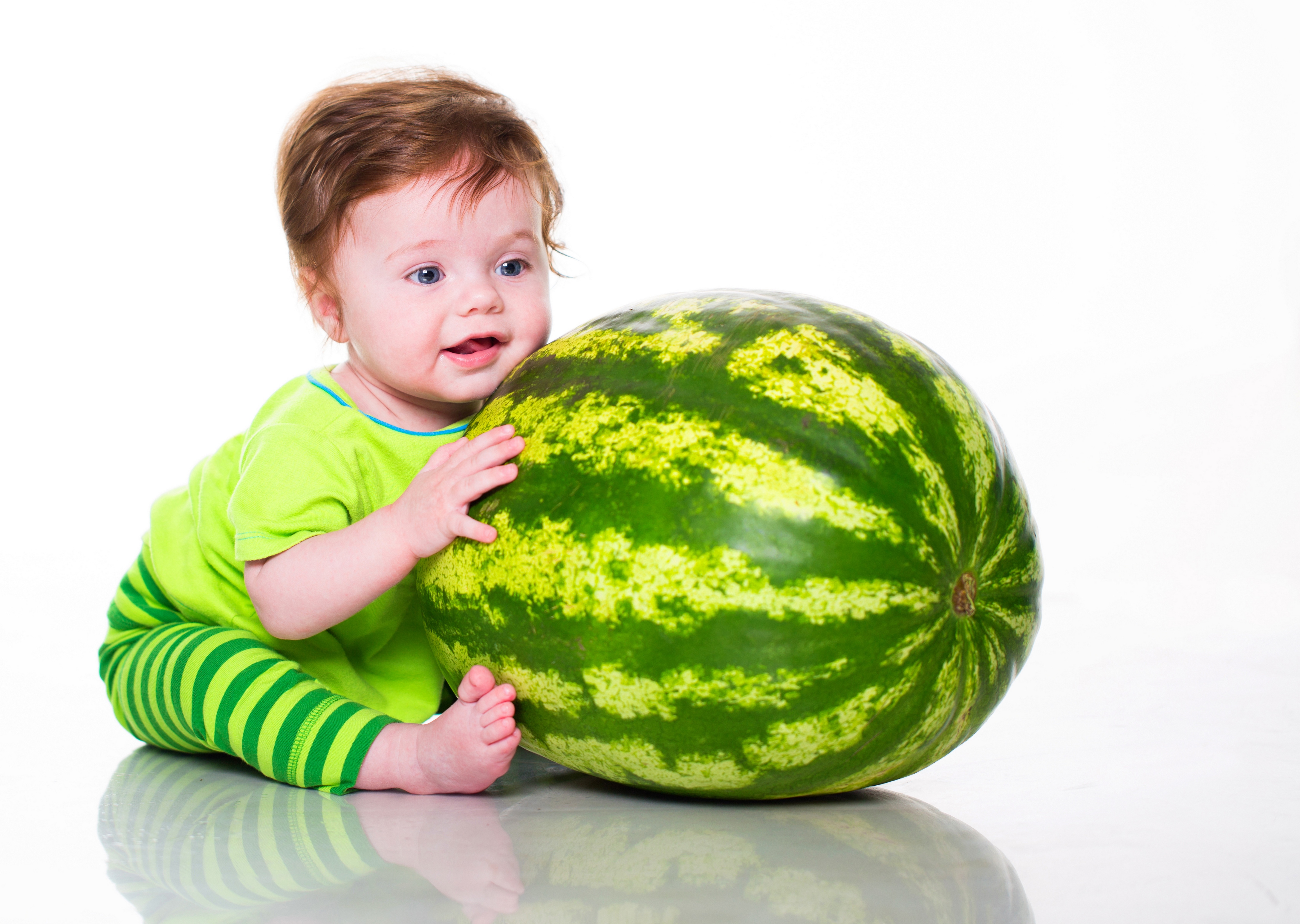 Голубоглазый маленький ребенок с арбузом - 4350x3092