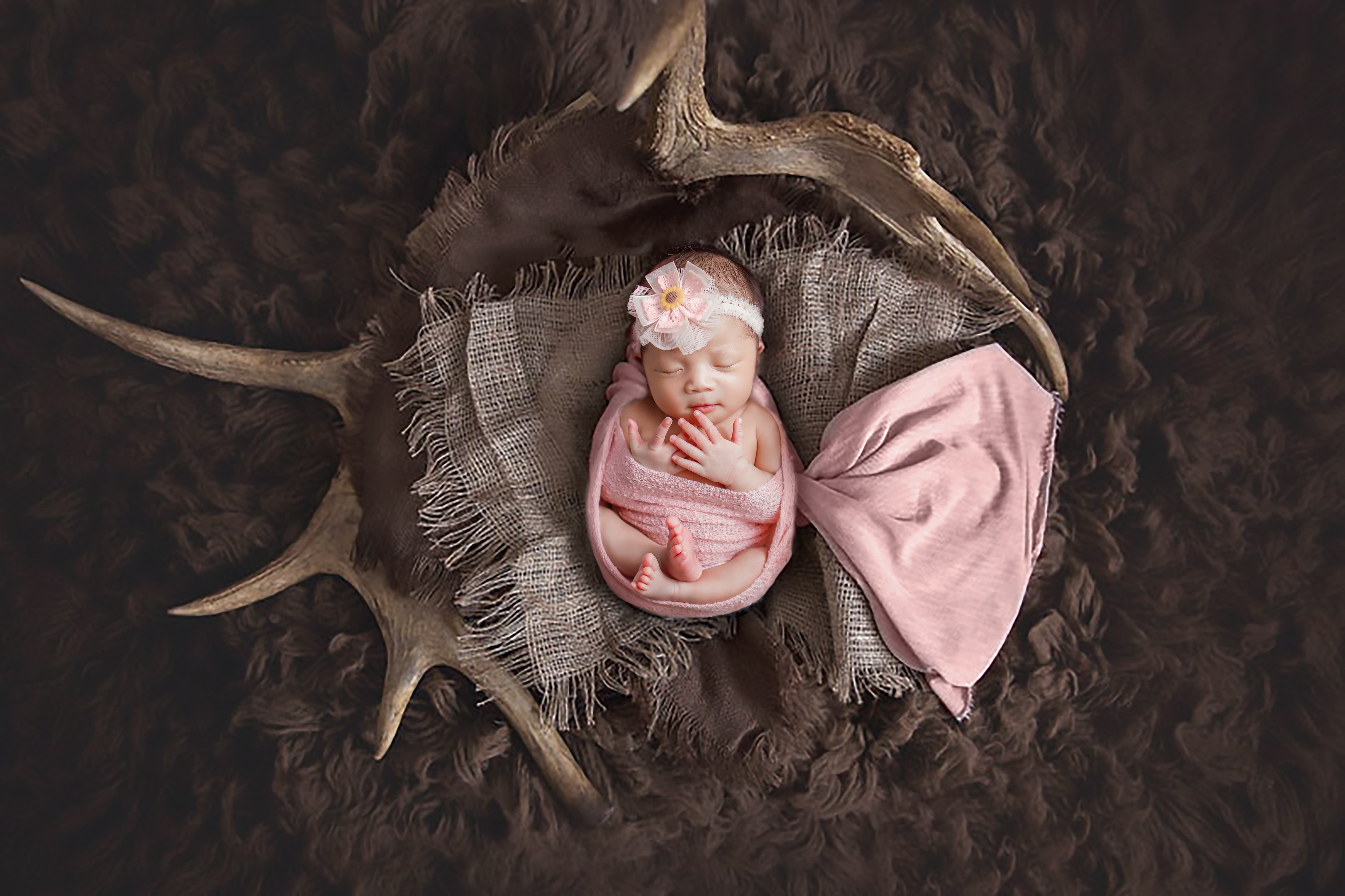 Новорожденный ребенок с оленьими рогами - 5400x3598