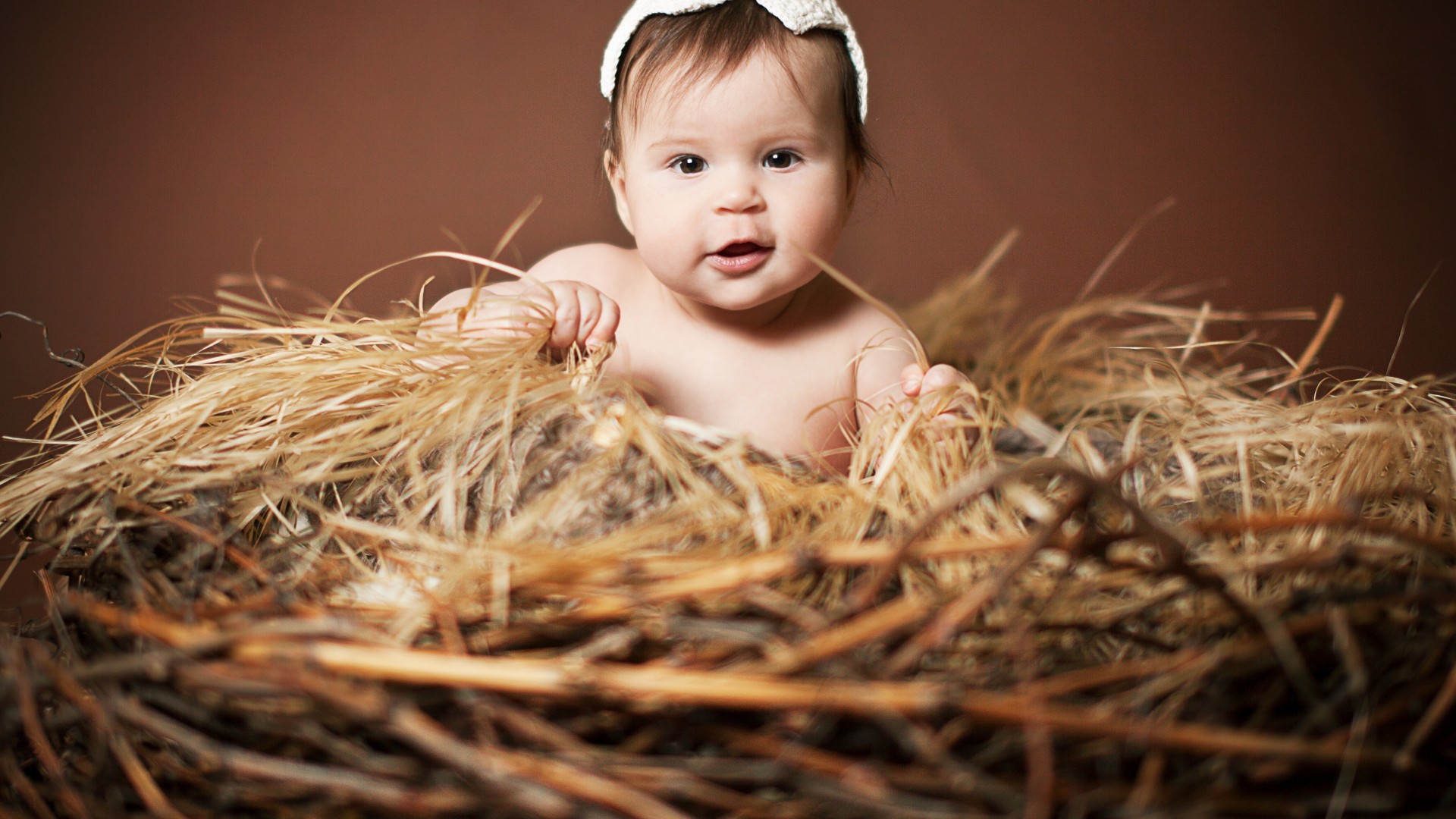 Обои: Малыш в гнезде из сена