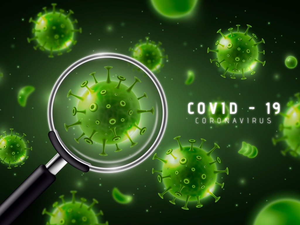 Бактерии коронавируса под увеличительным стеклом Обои для рабочего стола 1024x768