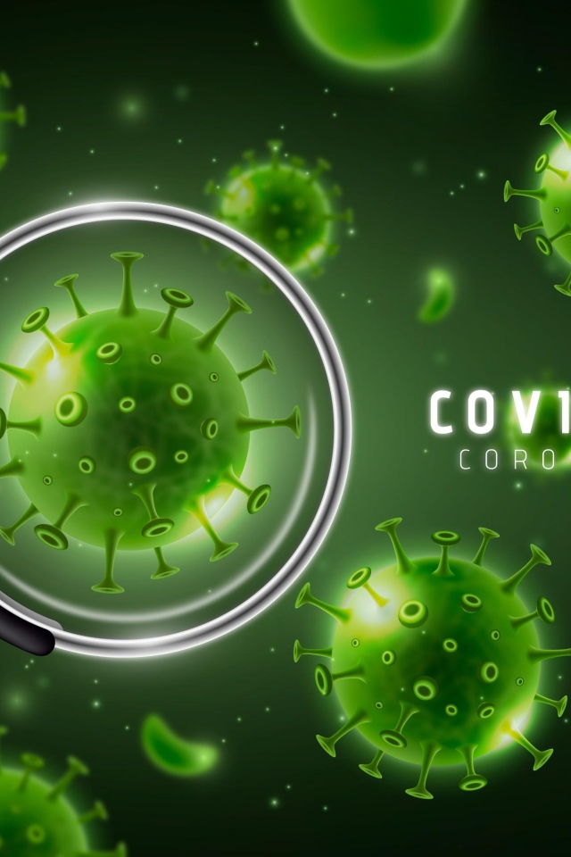 Бактерии коронавируса под увеличительным стеклом Обои для рабочего стола 640x960
