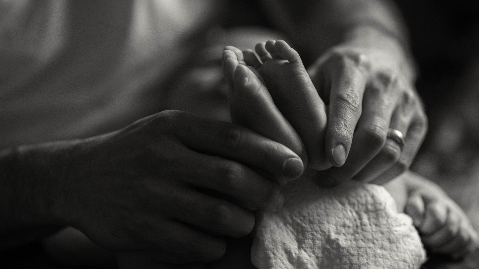 Ступни ребенка в руках отца - 1920x1080