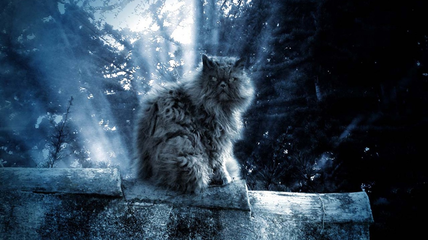Серый кот - 1366x768