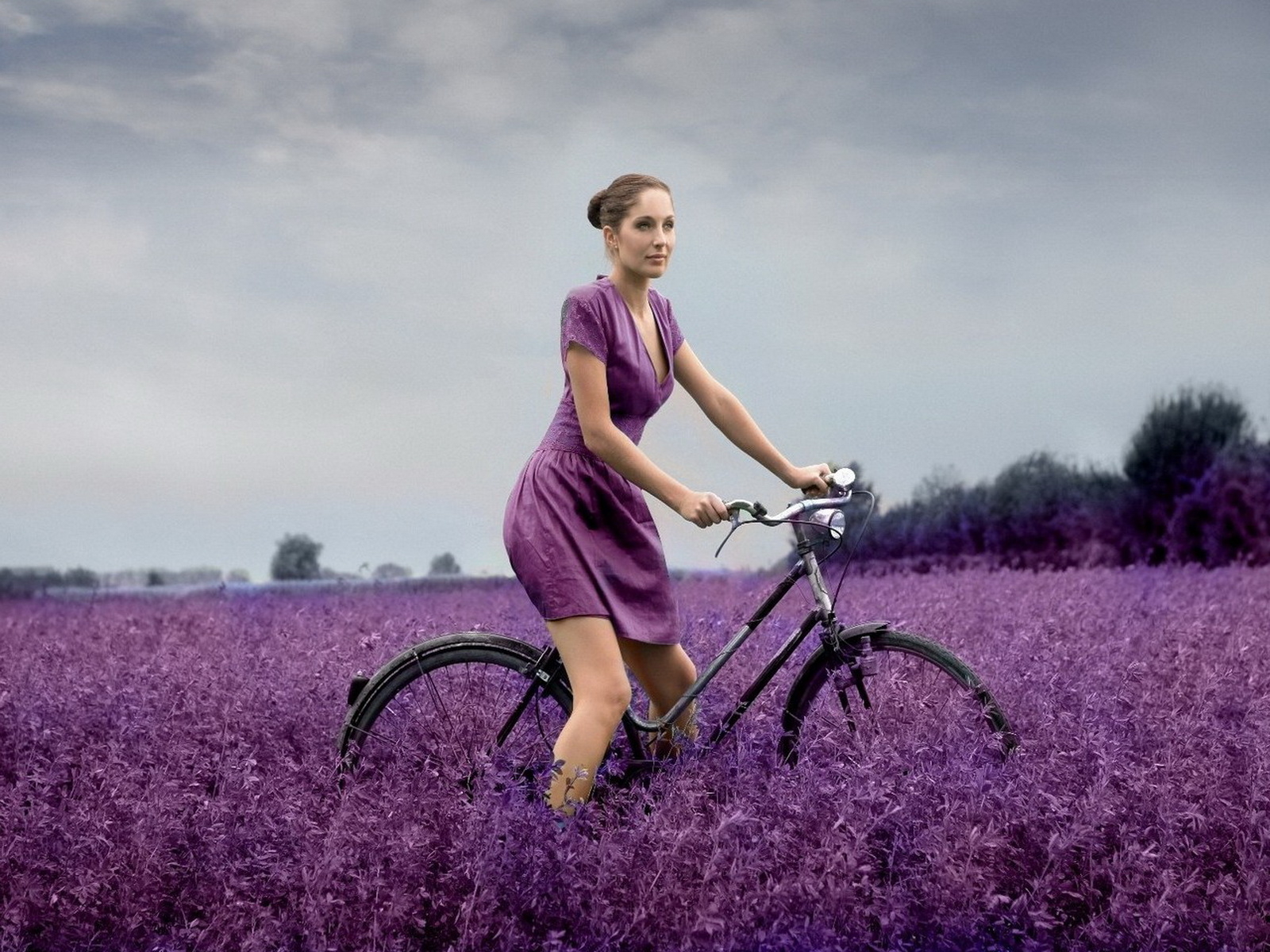 В поле на велосипеде - 1600x1200