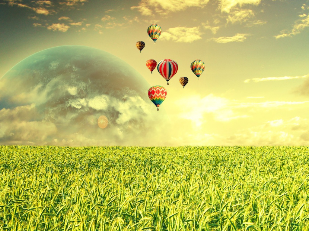 Воздушные шары над полем Обои для рабочего стола 1024x768