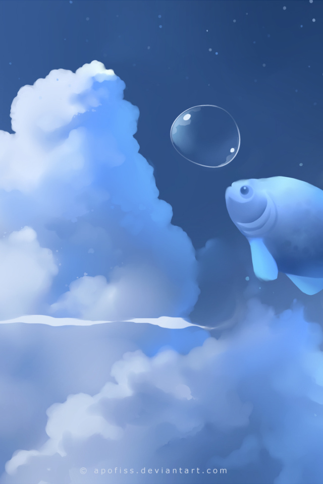 Рыба в облаках Обои для рабочего стола 640x960