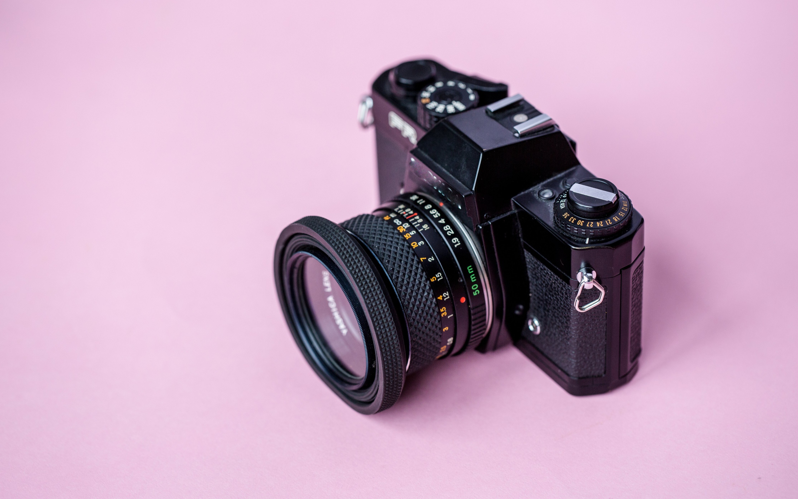 Старый фотоаппарат на розовом фоне - 4460x2973