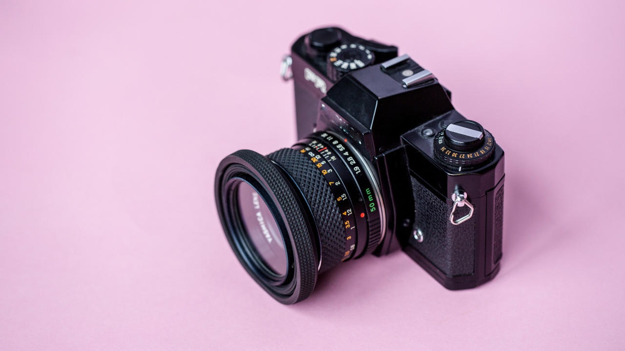 Старый фотоаппарат на розовом фоне - 4460x2973