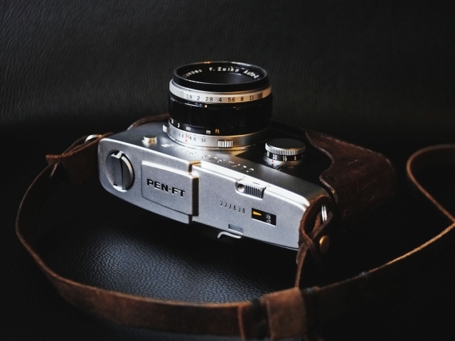 Обои: Старый фотоаппарат на черном фоне